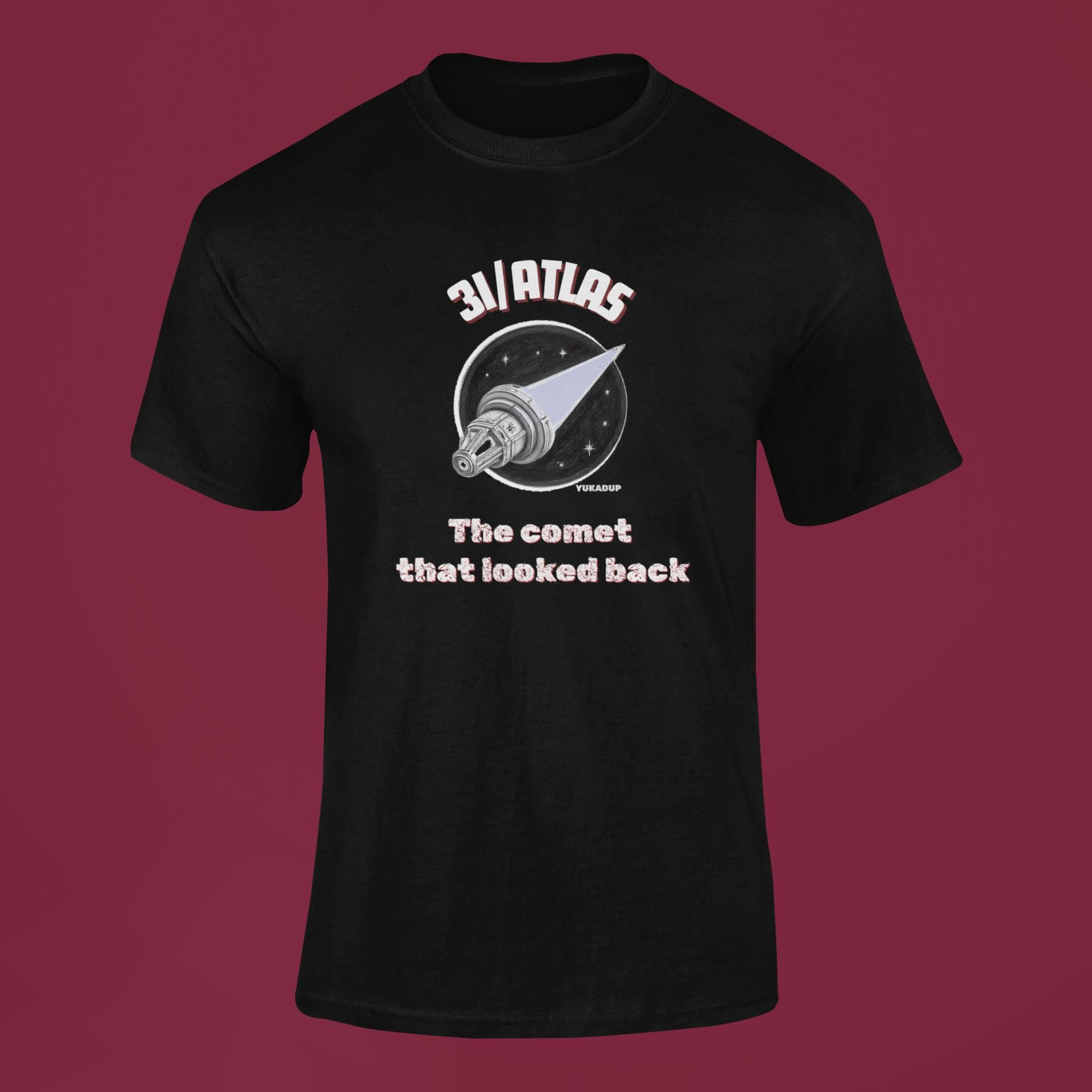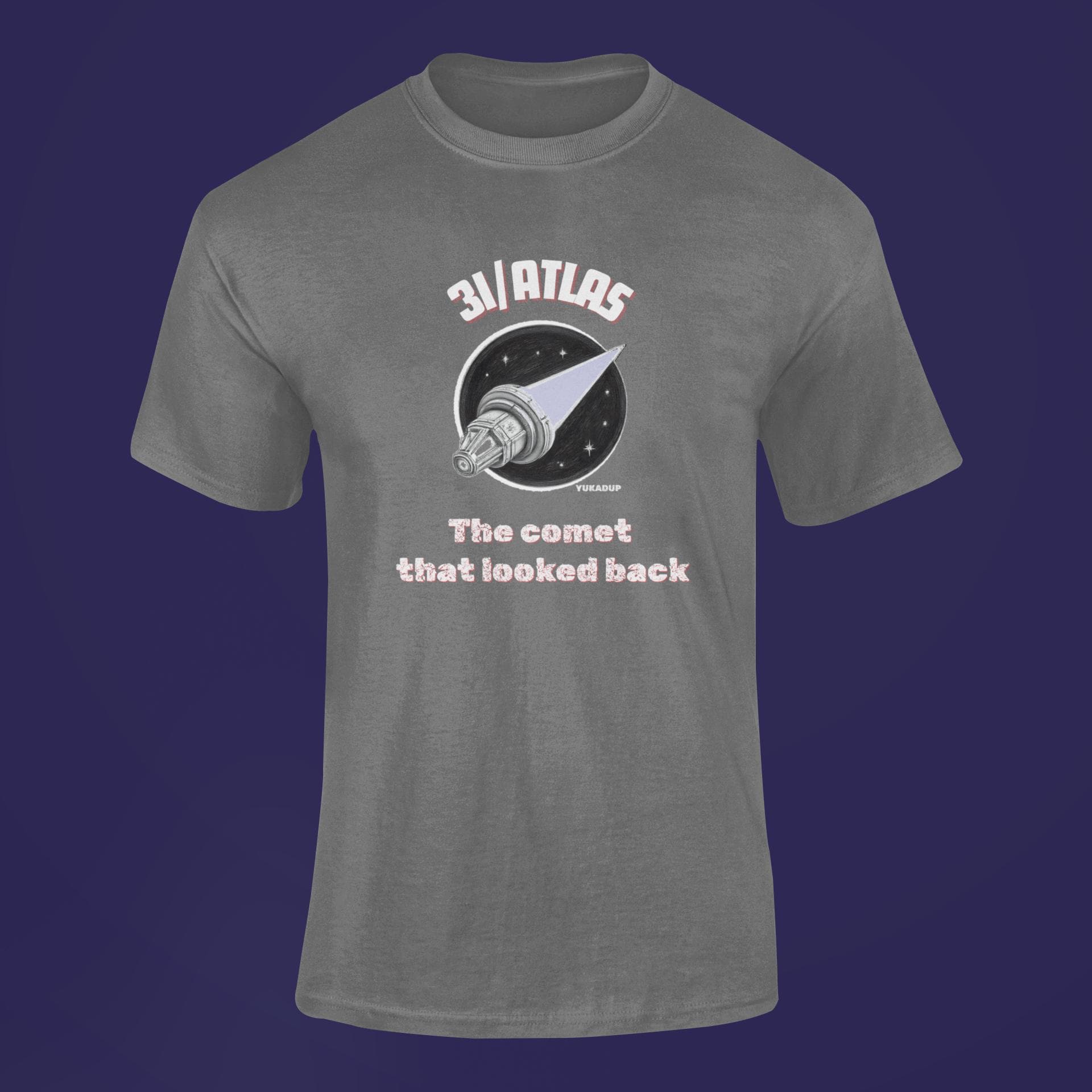 www.etsy.com/shop/YukaDupIntroducing our 3I/ATLAS The Comet That Looked Back Fitted T-Shirt, a stylish tribute to the wonders of our universe! Crafted from 100% organically grown cotton, this t-shirt not only feels great but also makes a statement. Perfect for anyone who’s captivated by the cosmos, this tee features a fun and quirky slogan that's sure to catch attention. Ideal for casual outings, stargazing sessions, or simply lounging around, it's a versatile addition to any wardrobe.