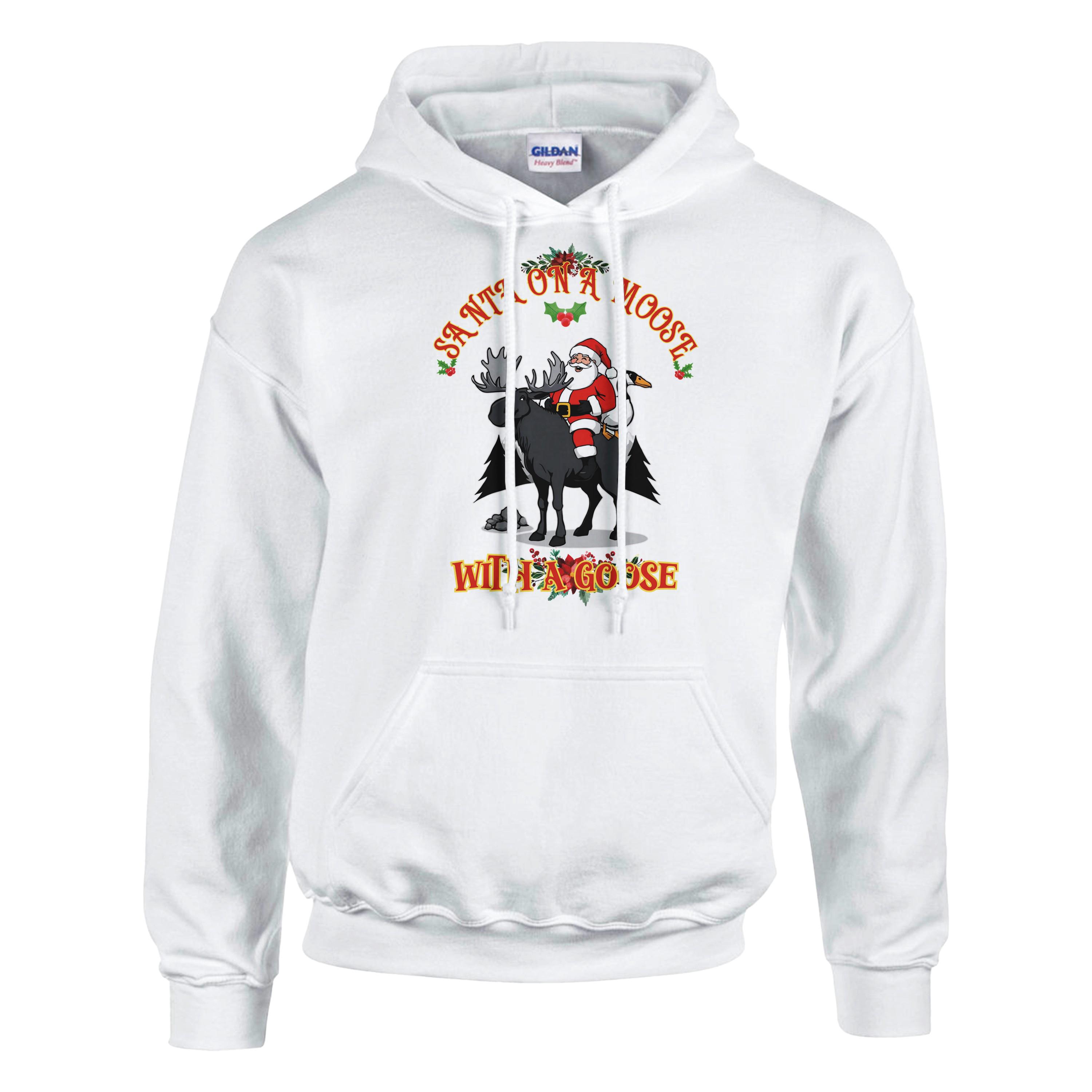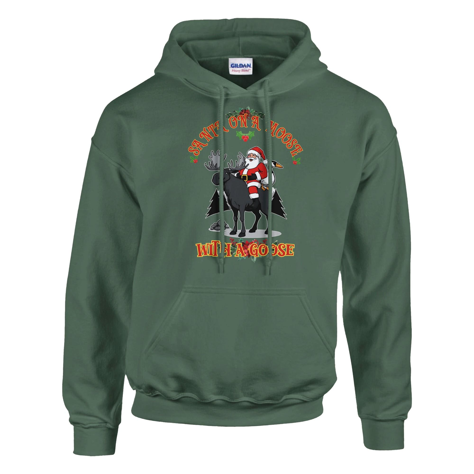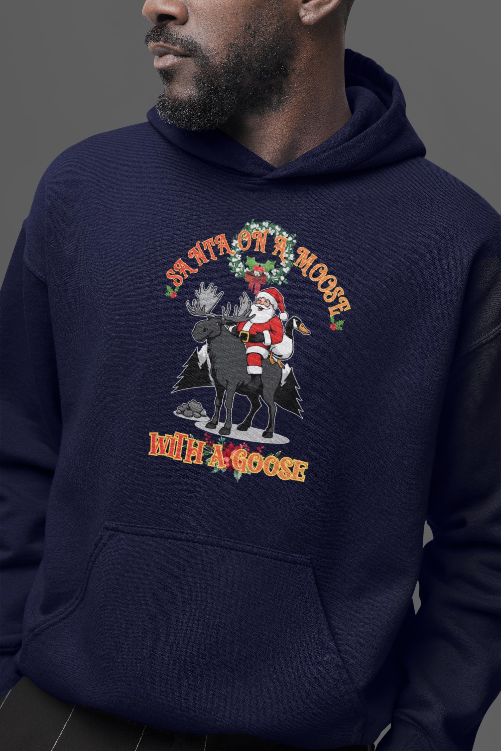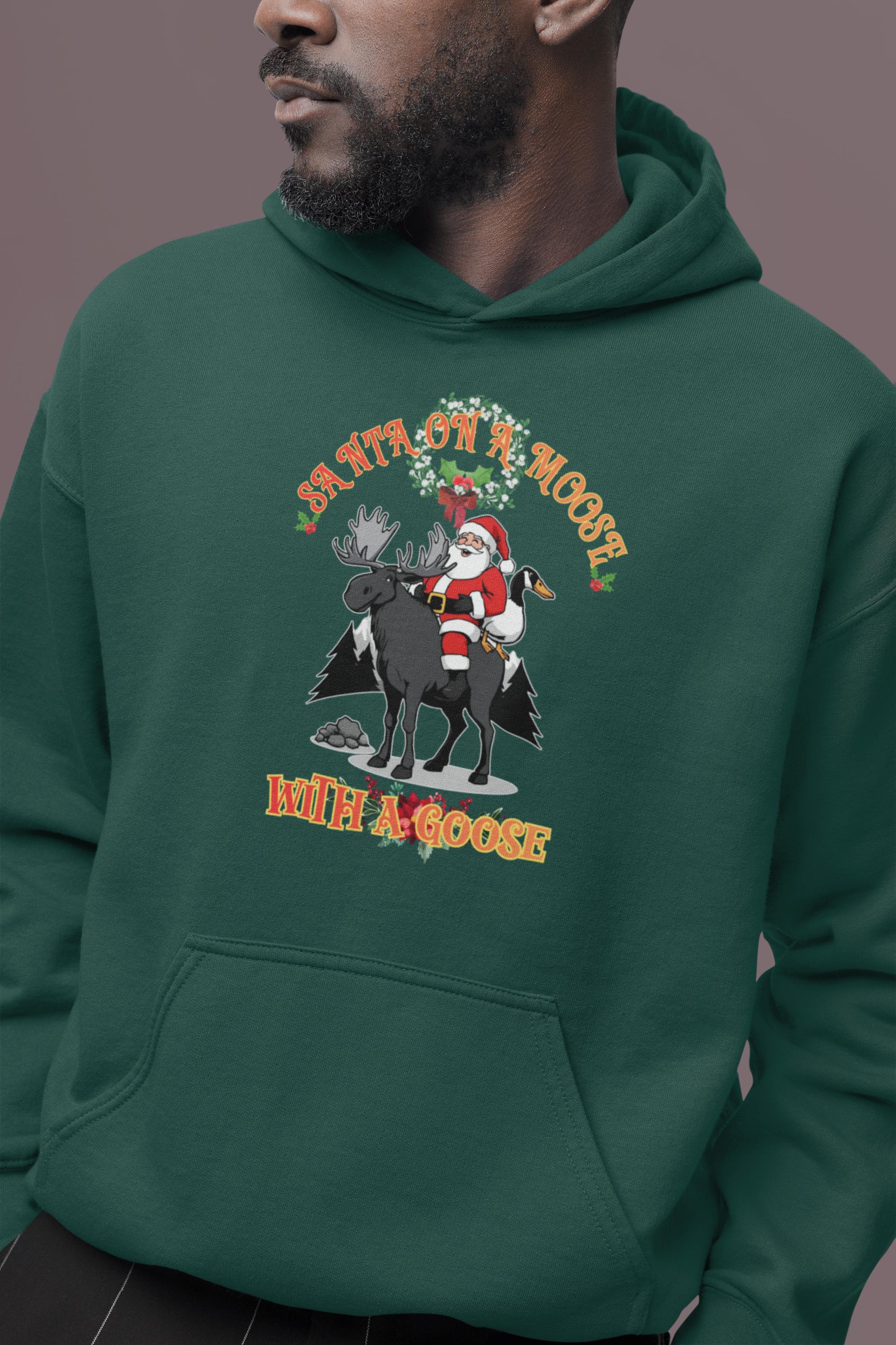 Get ready to steal the spotlight at every holiday gathering with this hilariously unique design featuring Santa riding a moose… accompanied by a goose! It’s playful, quirky, and just the right amount of festive chaos.