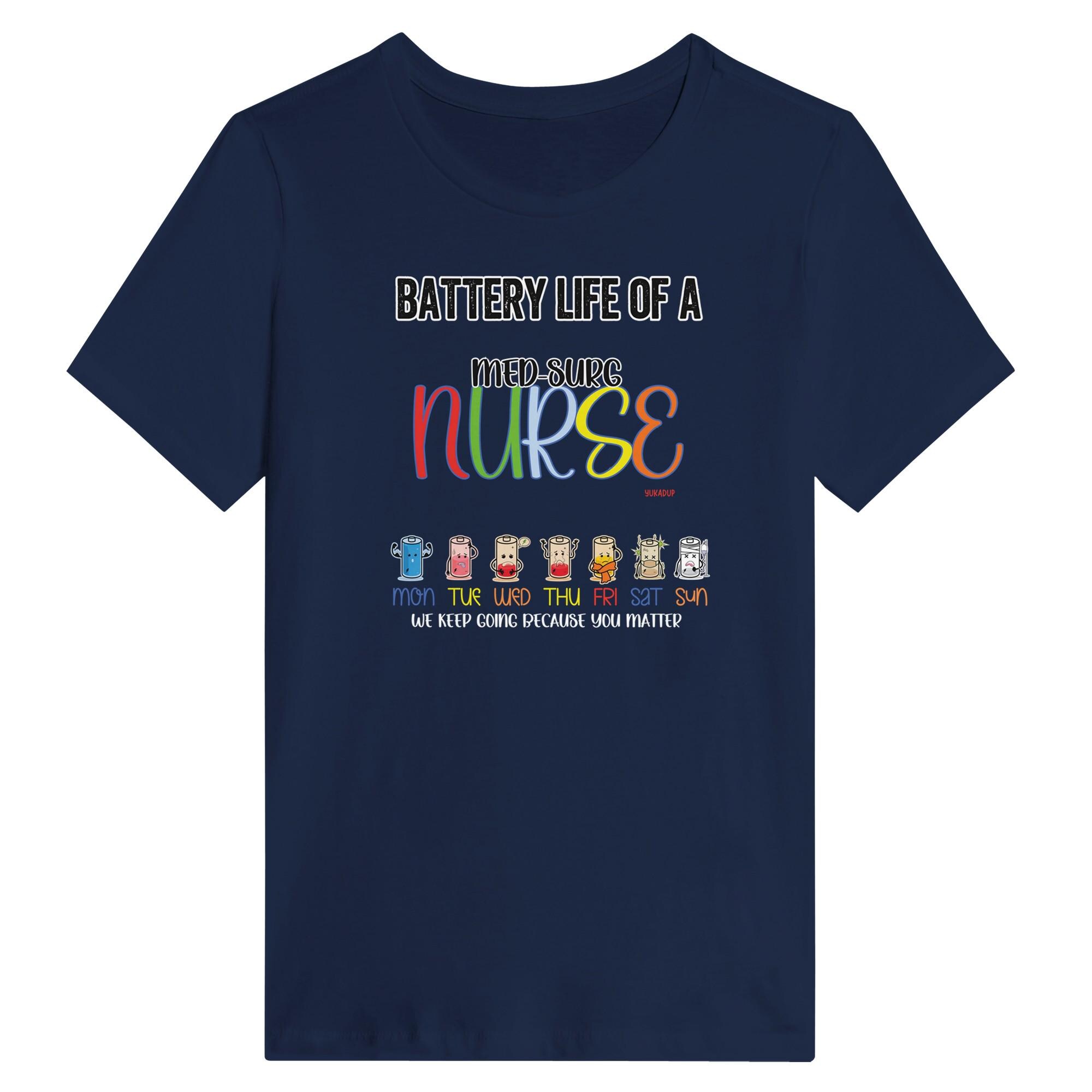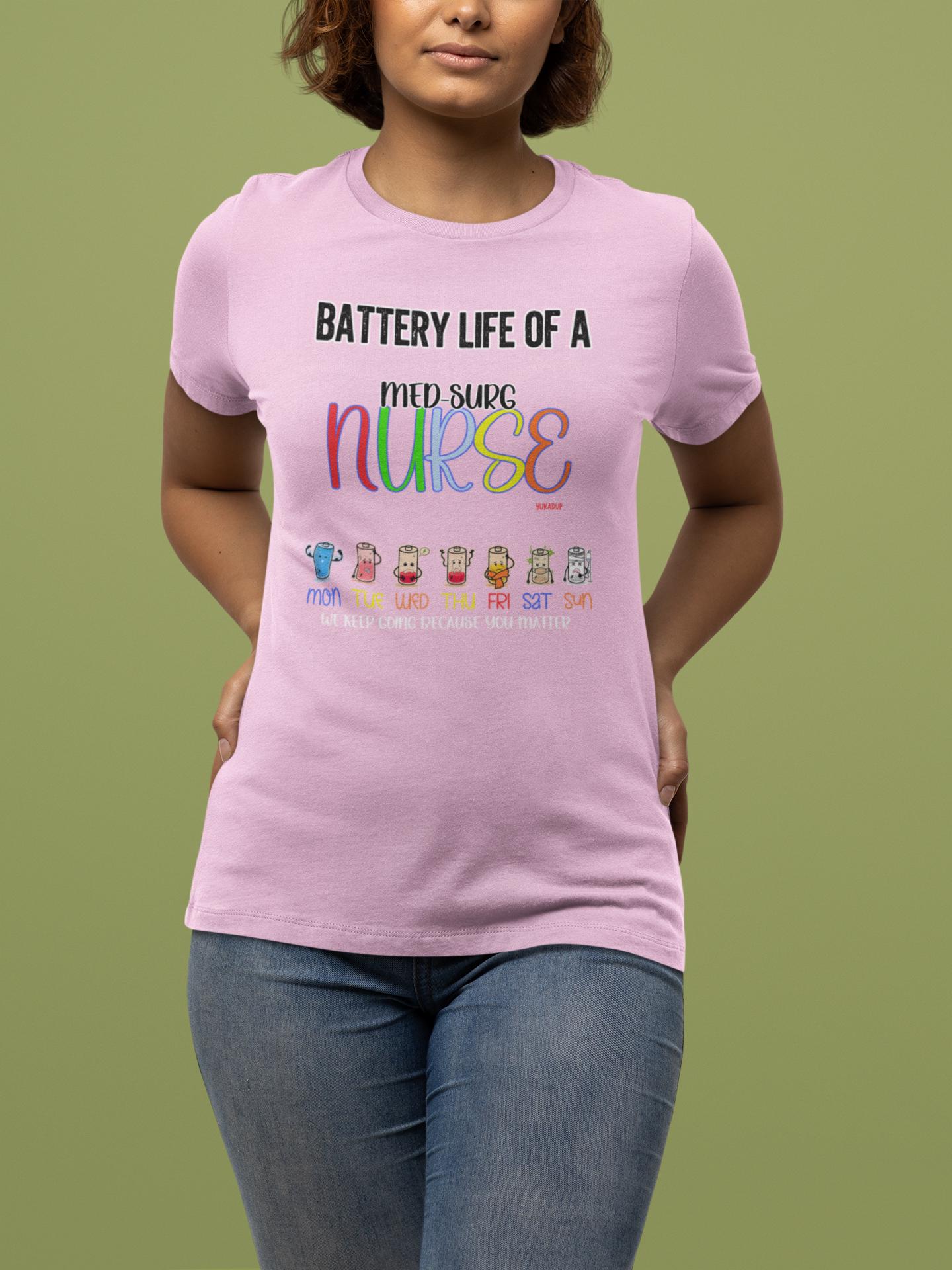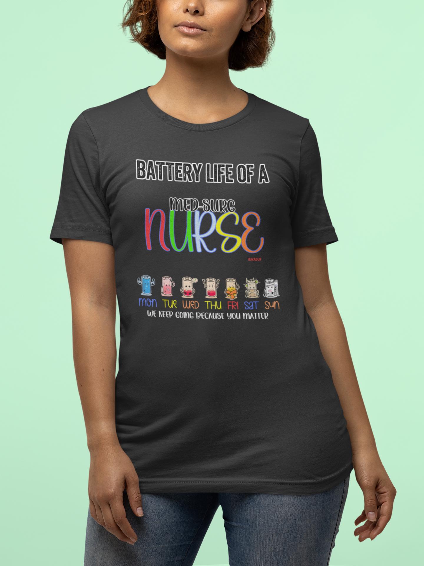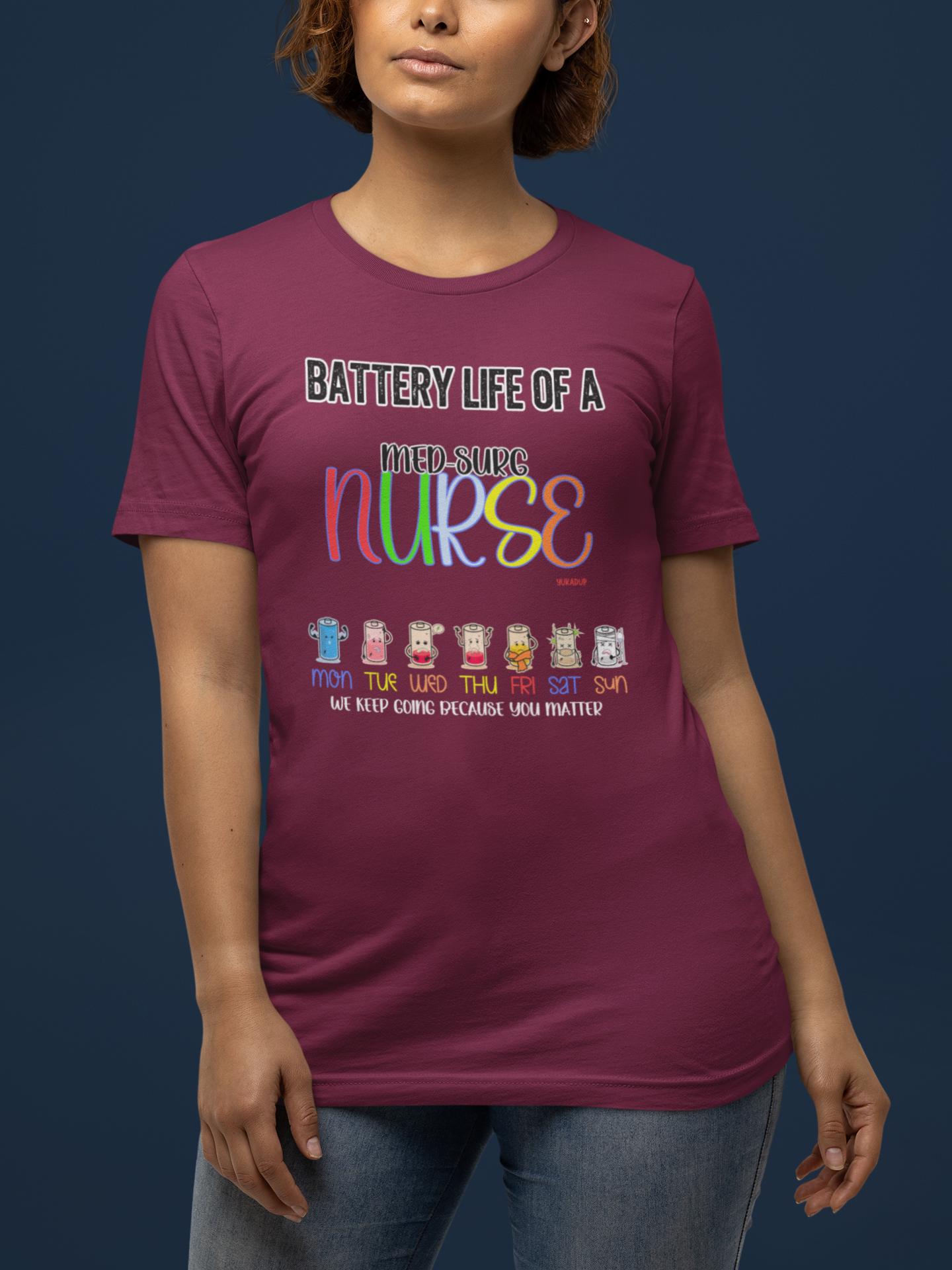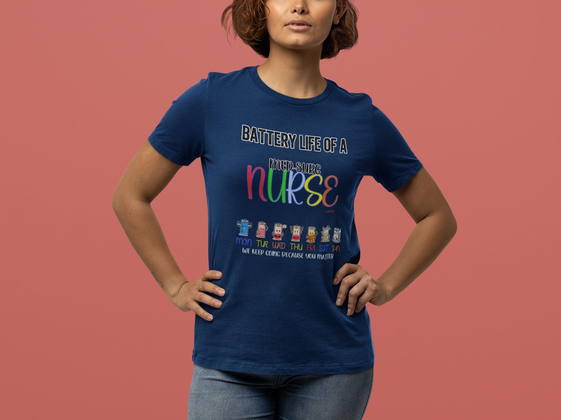 www.etsy.com/shop/YukaDupLong shifts, endless charting, and a coffee IV drip… sound familiar? This “Battery Life of a Med-Surg Nurse” T-shirt perfectly captures the humour and exhaustion that come with life on the floor. Designed for the nurses who give their all (even when their battery is running dangerously low), this tee or t-shirt is a fun and relatable addition to any scrubs-day wardrobe. Gift for a loved one who works in a hospital