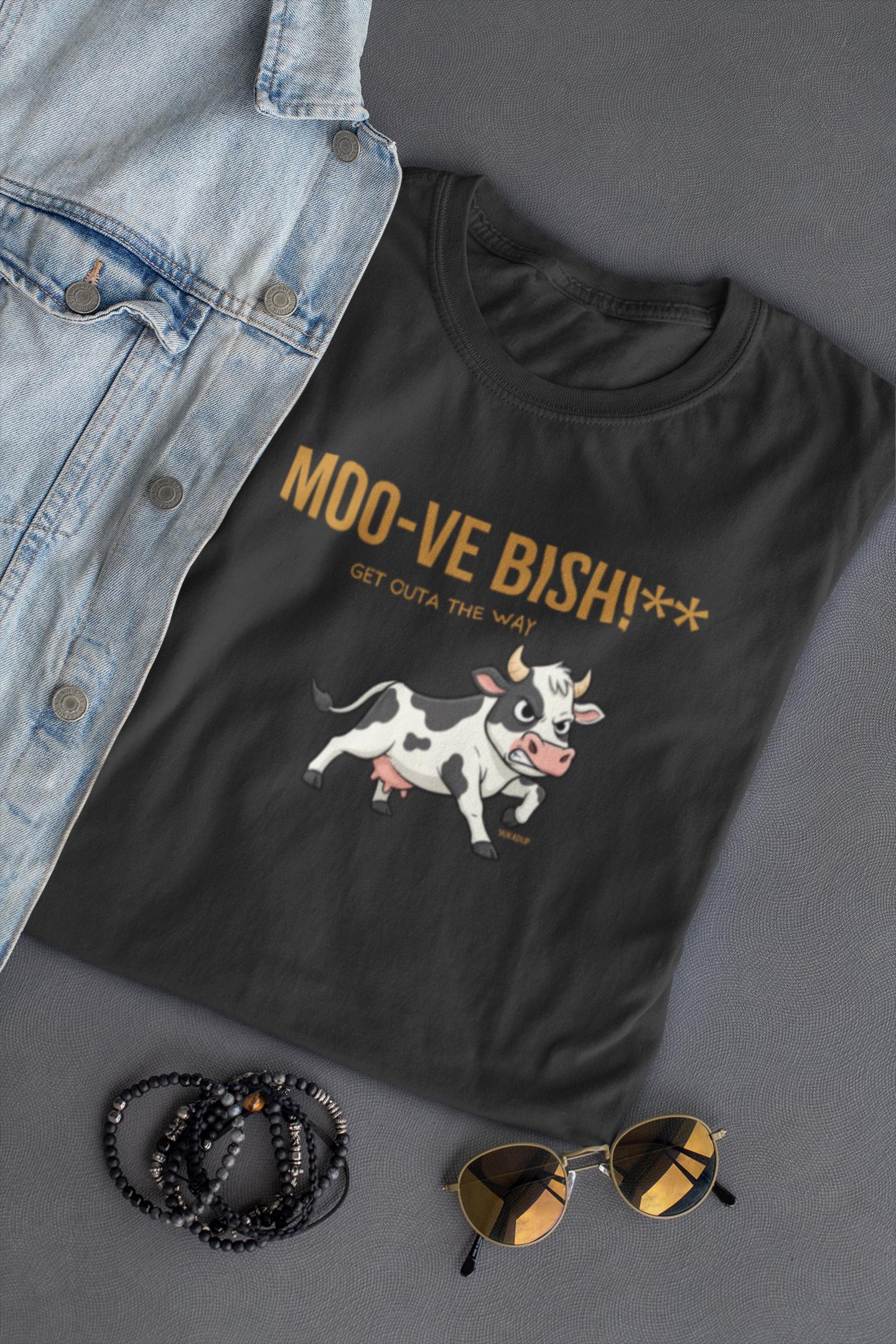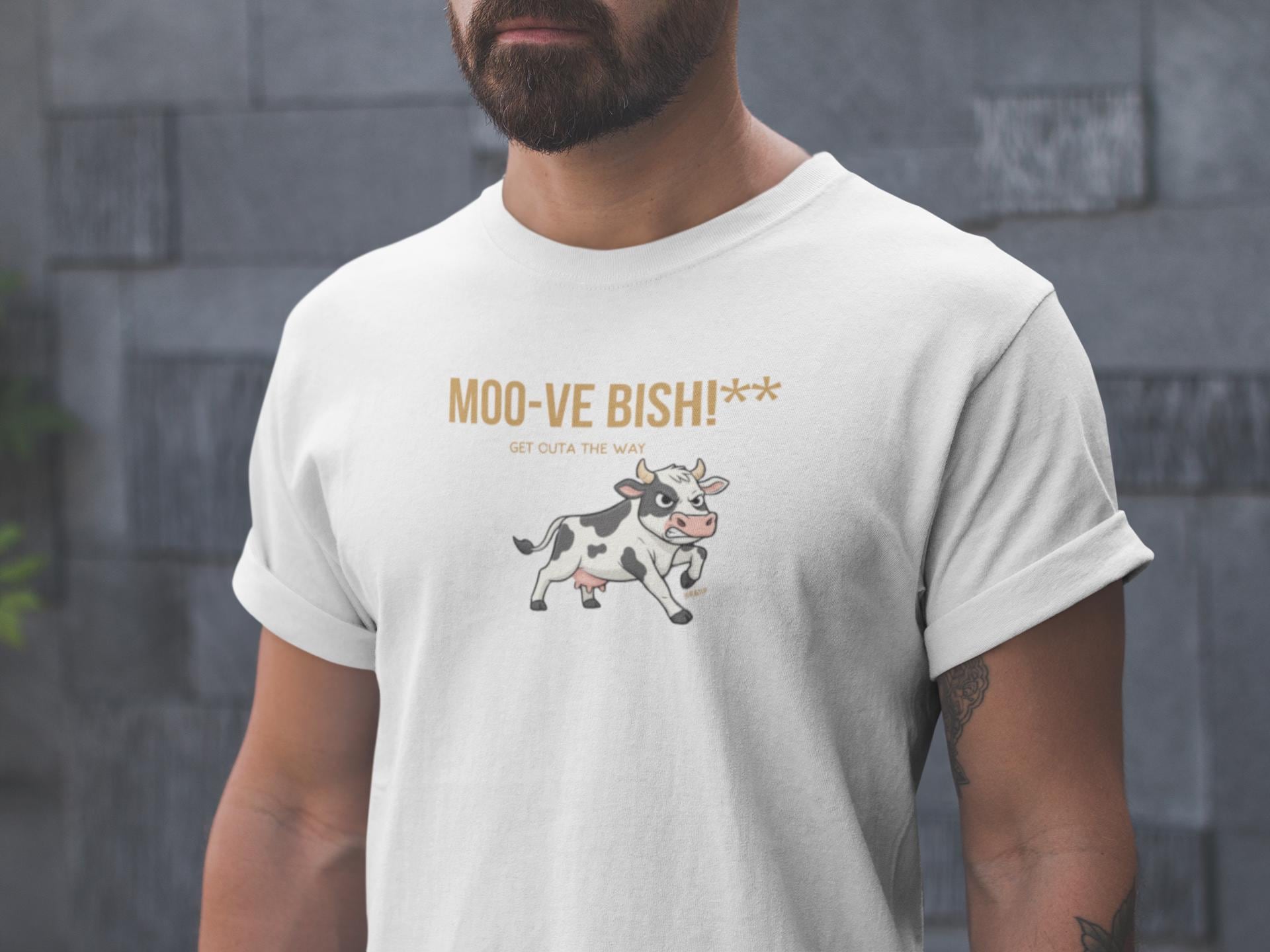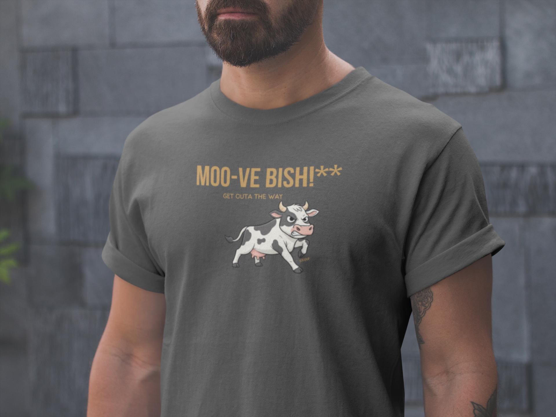 www.etsy.com/shop/YukaDupShow off your playful side with this cheeky “Moo-ve Bish” t-shirt! Featuring a clever homophone pun and a stylish cow-themed design, this cool and trendy top is perfect for anyone who loves humour, wordplay, and standout animal graphics.