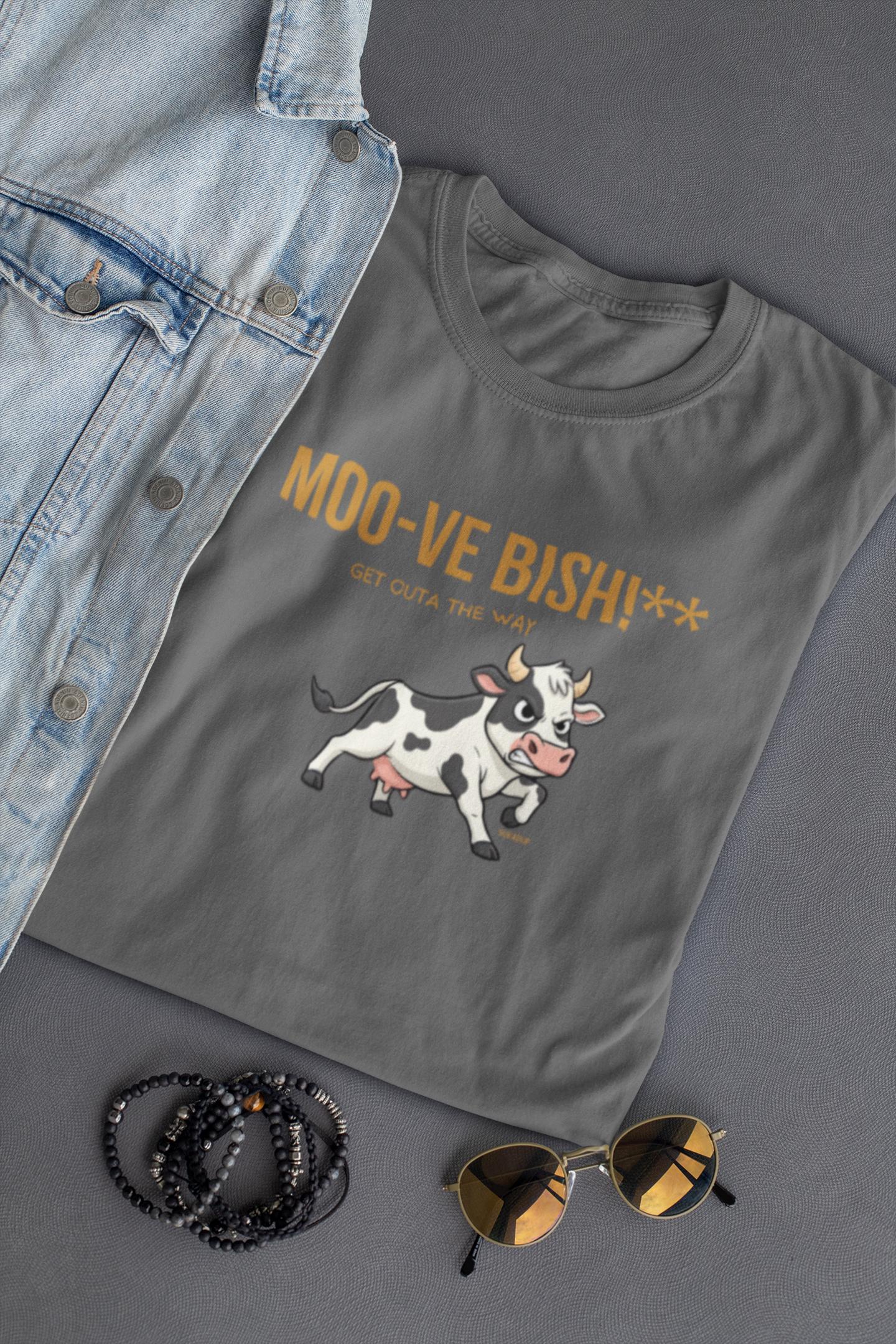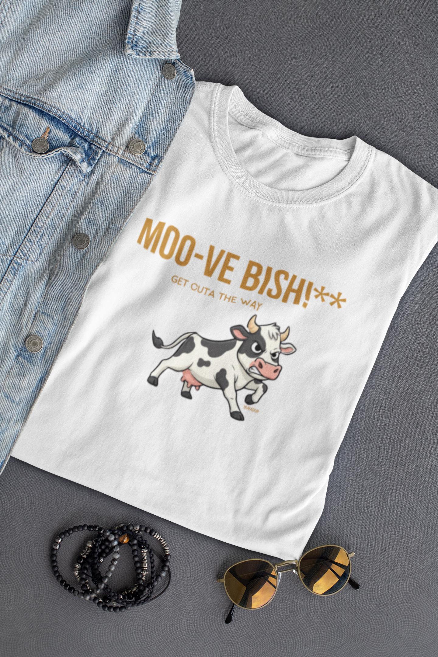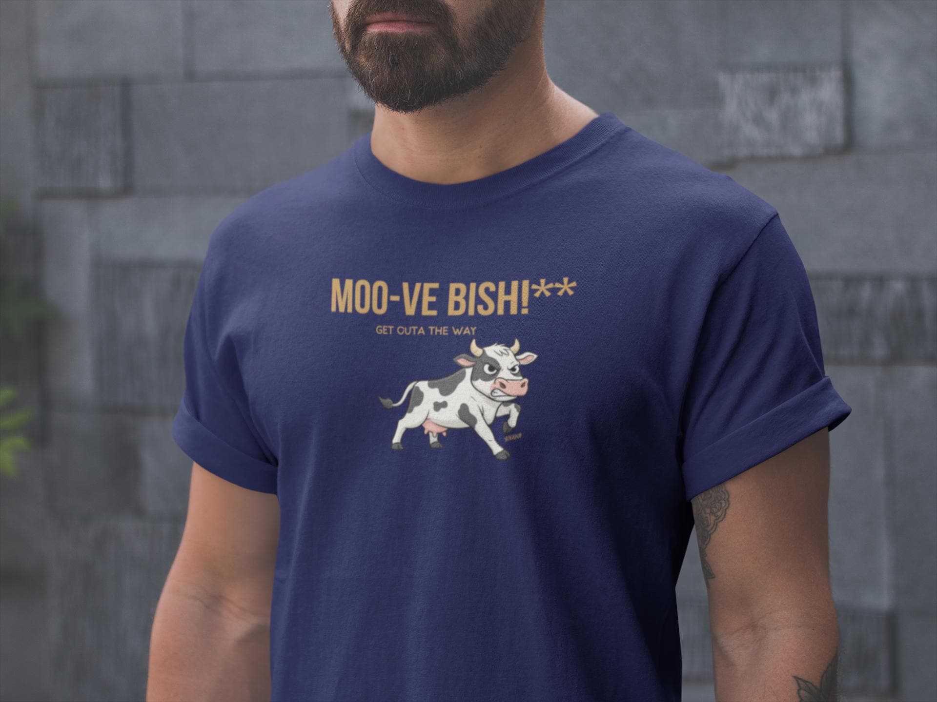www.etsy.com/shop/YukaDupShow off your playful side with this cheeky “Moo-ve Bish” t-shirt! Featuring a clever homophone pun and a stylish cow-themed design, this cool and trendy top is perfect for anyone who loves humour, wordplay, and standout animal graphics.