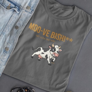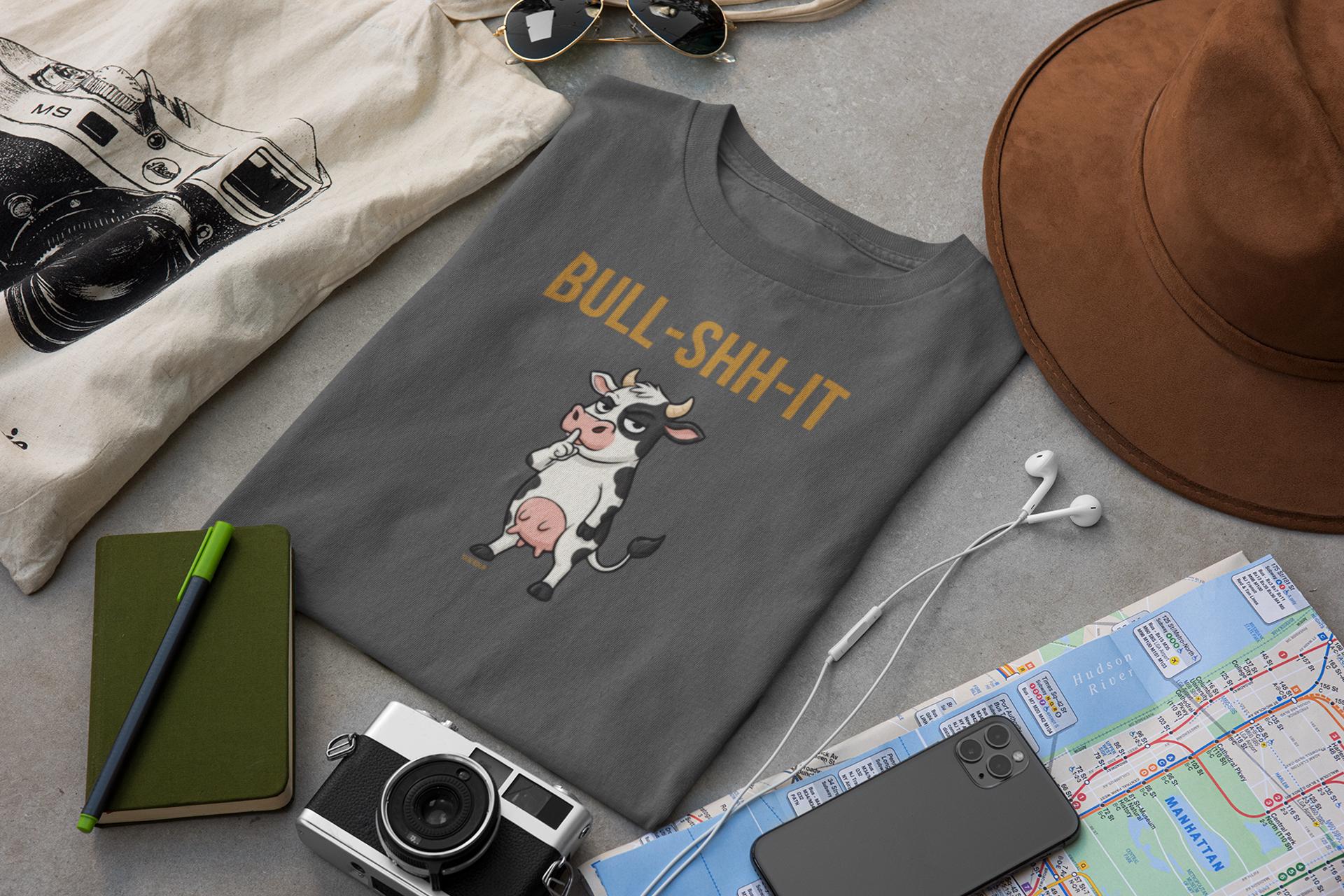 www.etsy.com/shop/YukaDupShow off your playful side with this cheeky “Bull-Shh-it” t-shirt! Featuring a clever homophone pun and a stylish cow-themed design, this cool and trendy top is perfect for anyone who loves humour, wordplay, and standout animal graphics.
