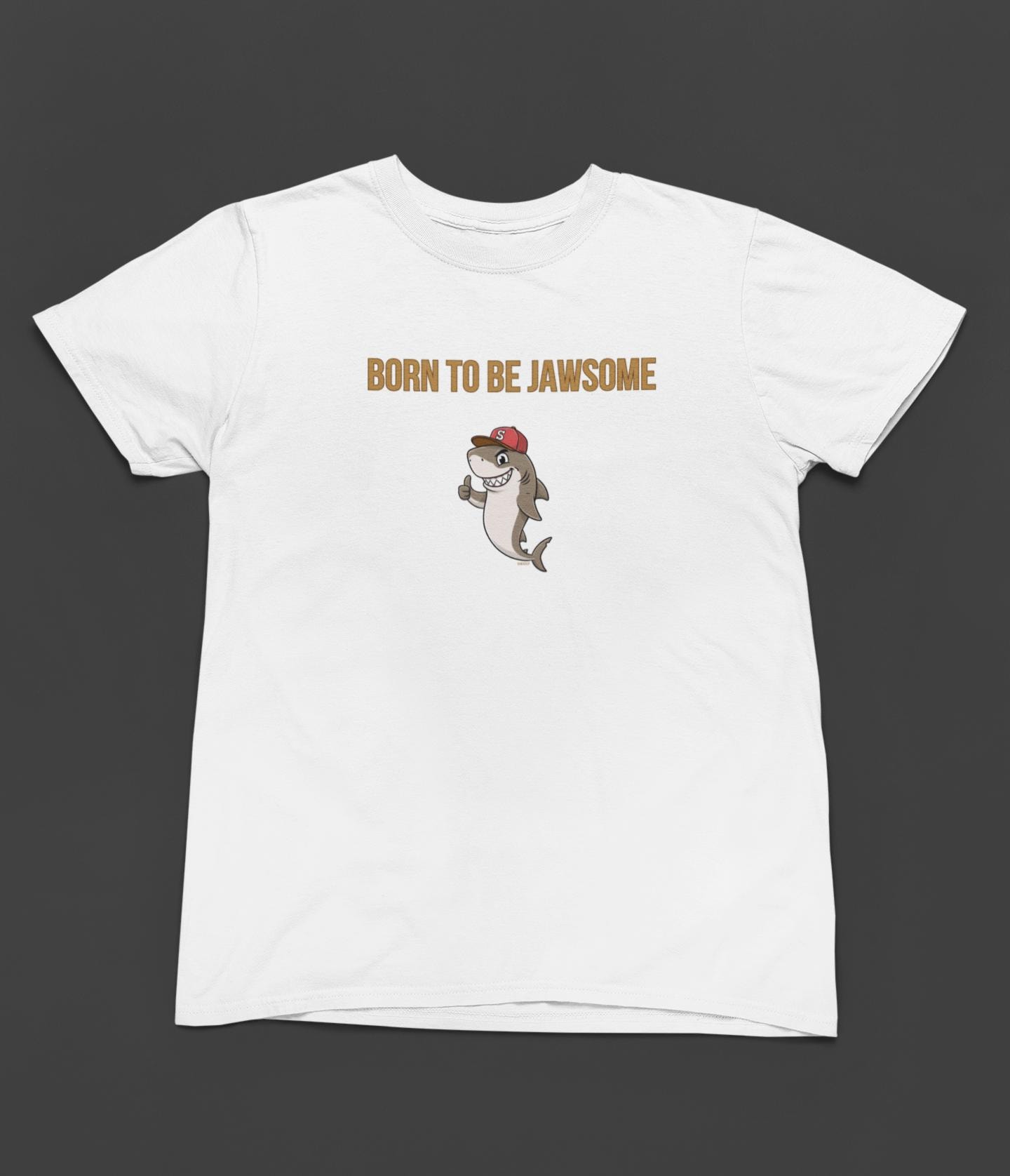 www.etsy.com/shop/YukaDupSay hello to the coolest predator in the ocean: our shark mascot, who is absolutely BORN TO BE JAWSOME! This design captures the happy, confident vibe with a shark flashing a big smile and giving a cheerful thumbs up. No menace here—just pure, awesome confidence.