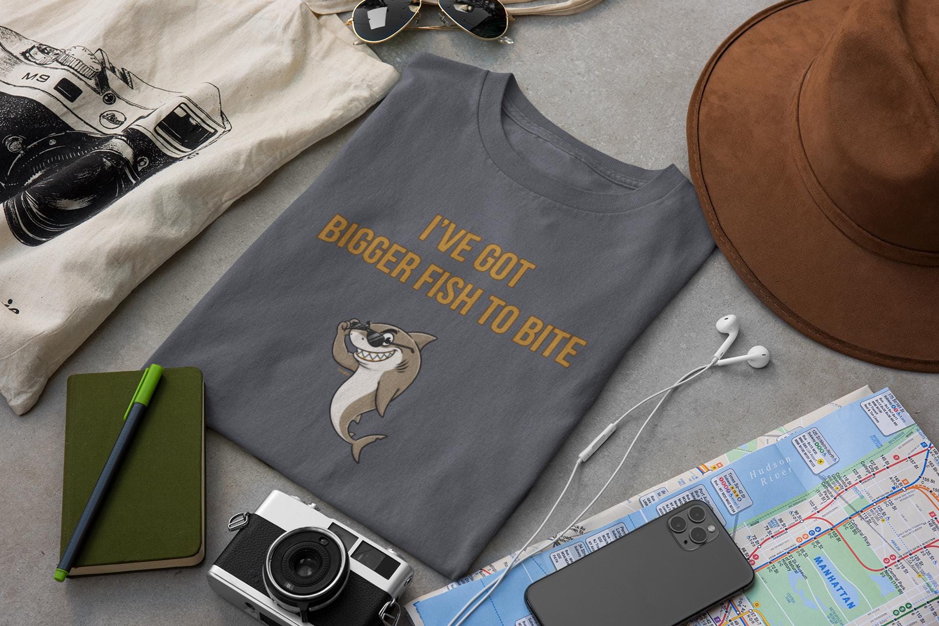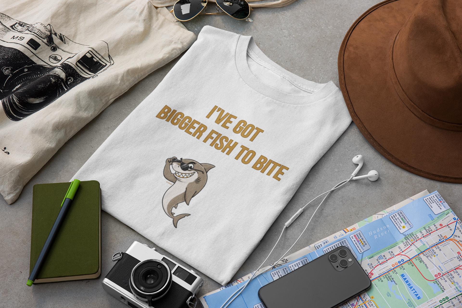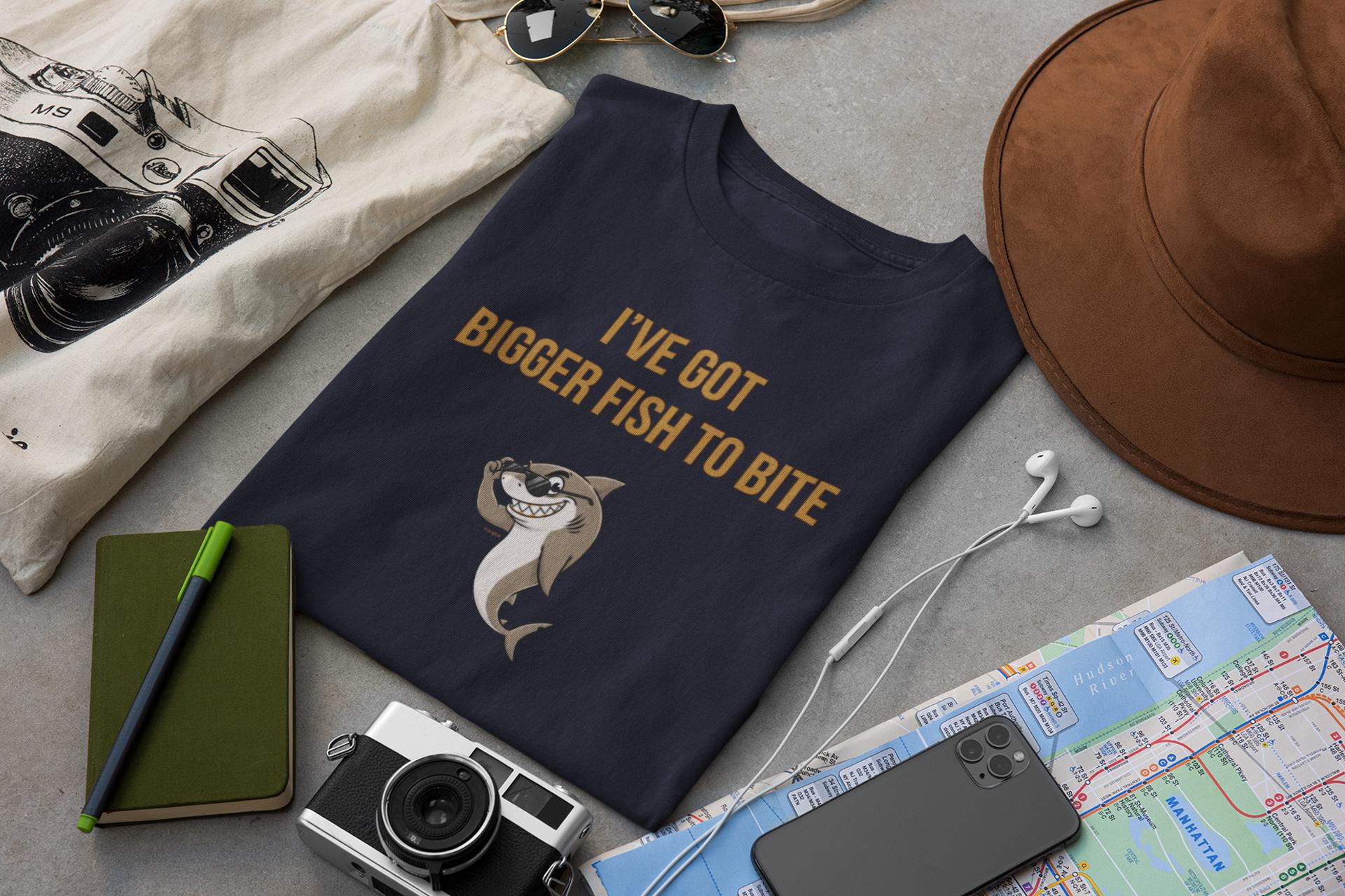 www.etsy.com/shop/YukaDupIntroducing the "I'VE GOT BIGGER FISH TO BITE" T-shirt, featuring a truly sinister shark who has little patience for small fry. This design captures a confident, impatient predator with a look that says, "Your problem is beneath me, and my next victim is far more interesting."