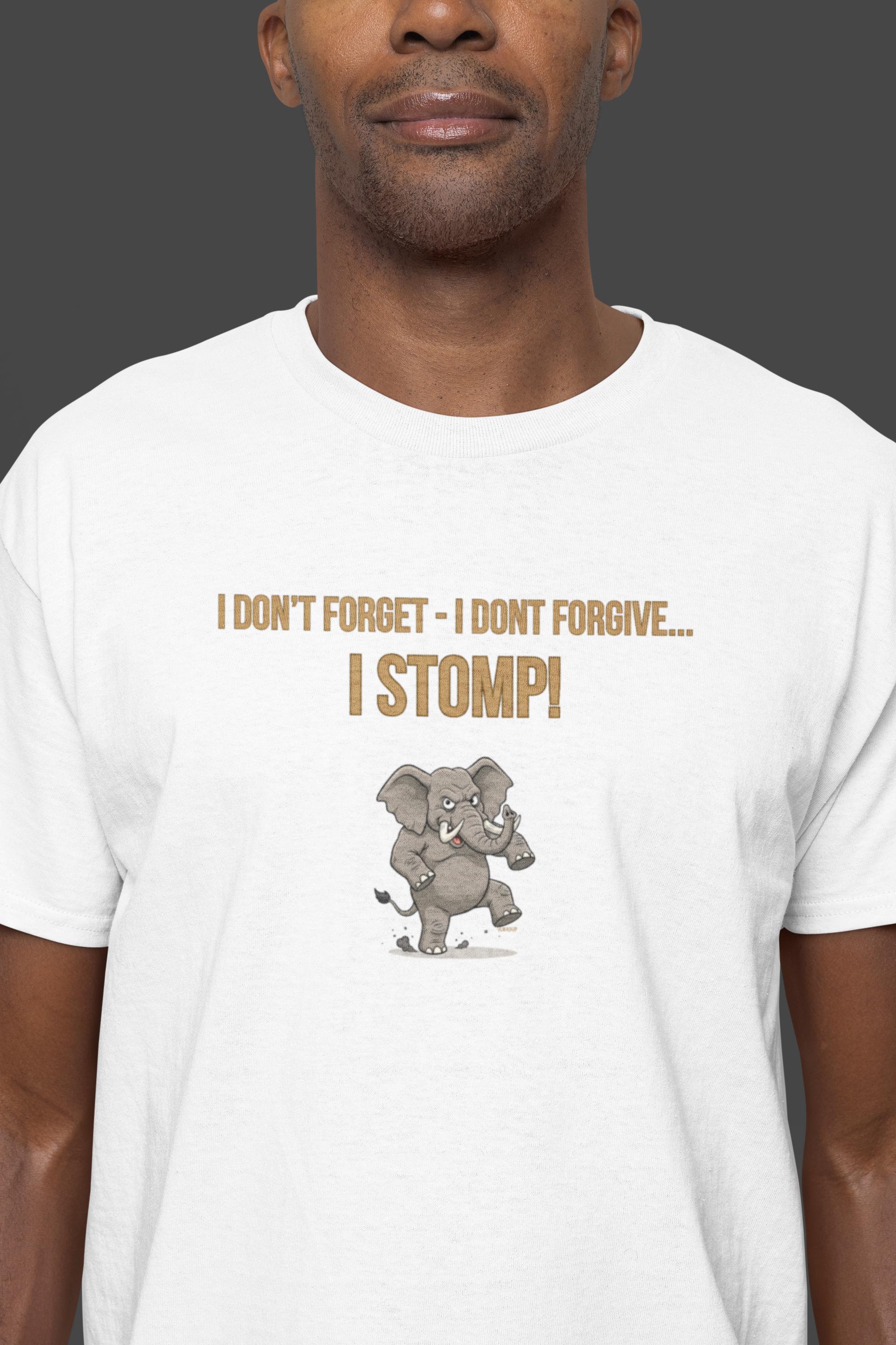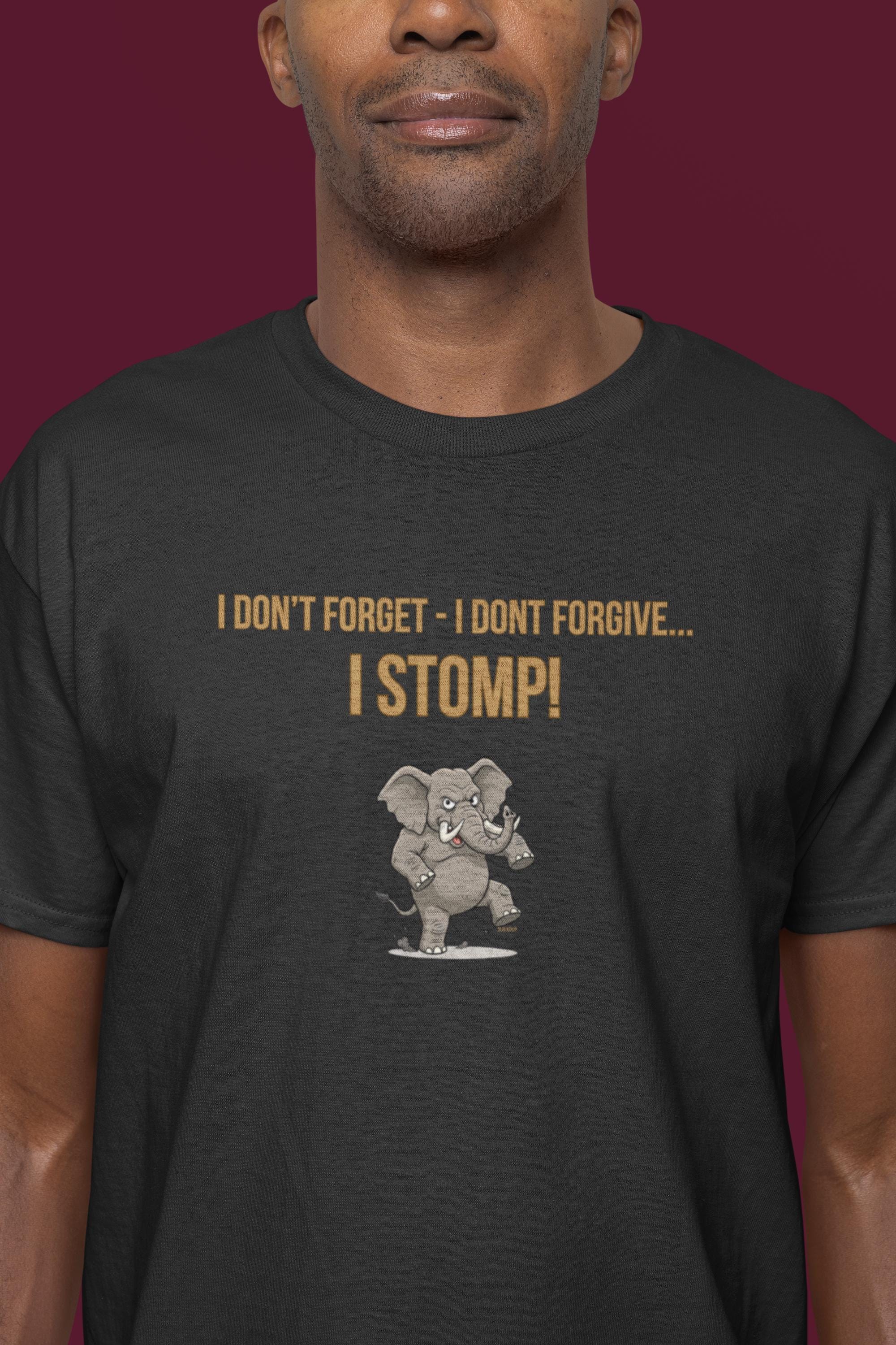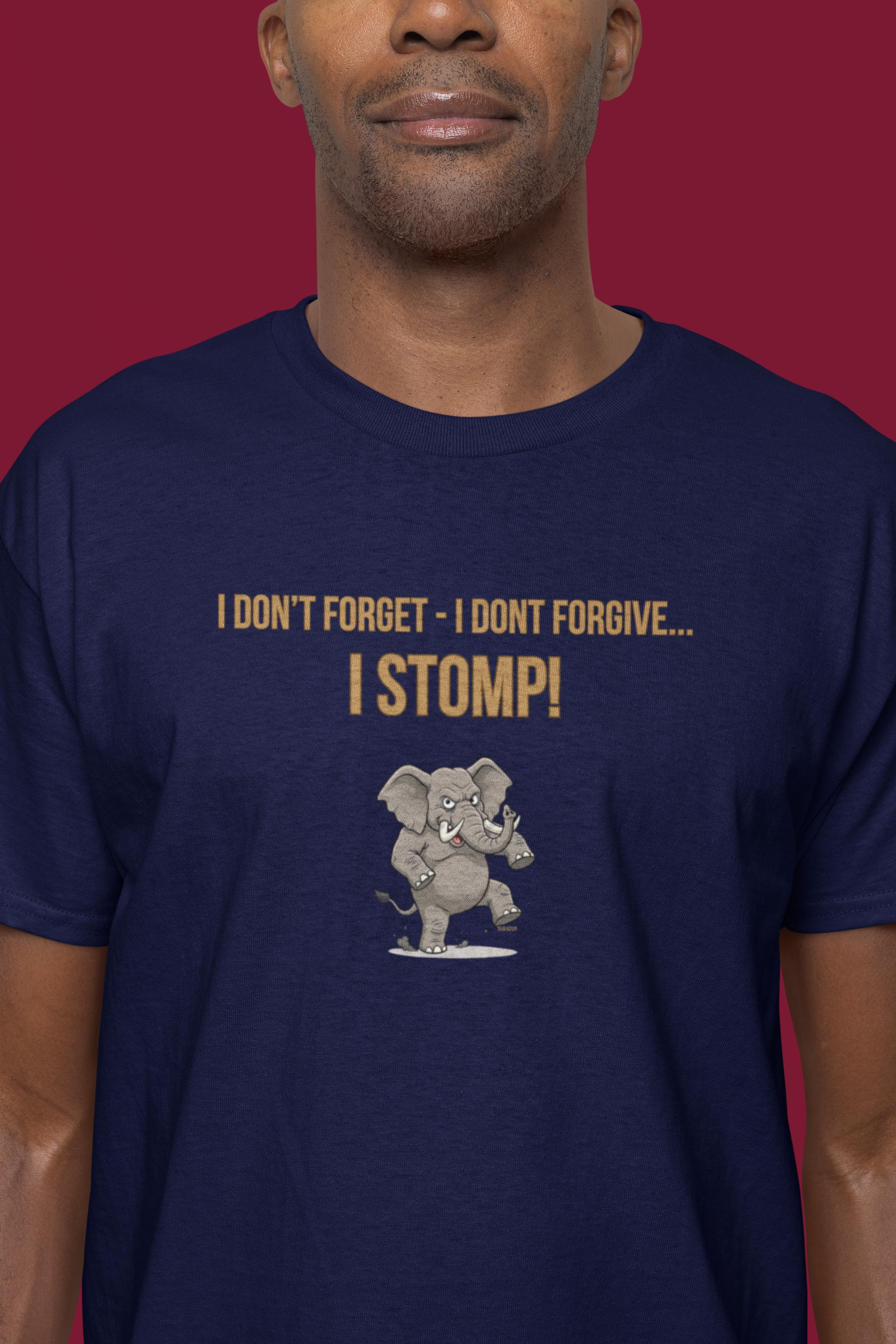 www.etsy.com/shop/YukaDupUnleash your inner powerhouse with the "I DON'T FORGET - I DON'T FORGIVE - I STOMP" T-shirt. This design features a massive, determined elephant, legs braced and ready to stomp out any obstacle in its path. It’s a bold statement inspired by the elephant’s legendary memory and fierce protective nature.