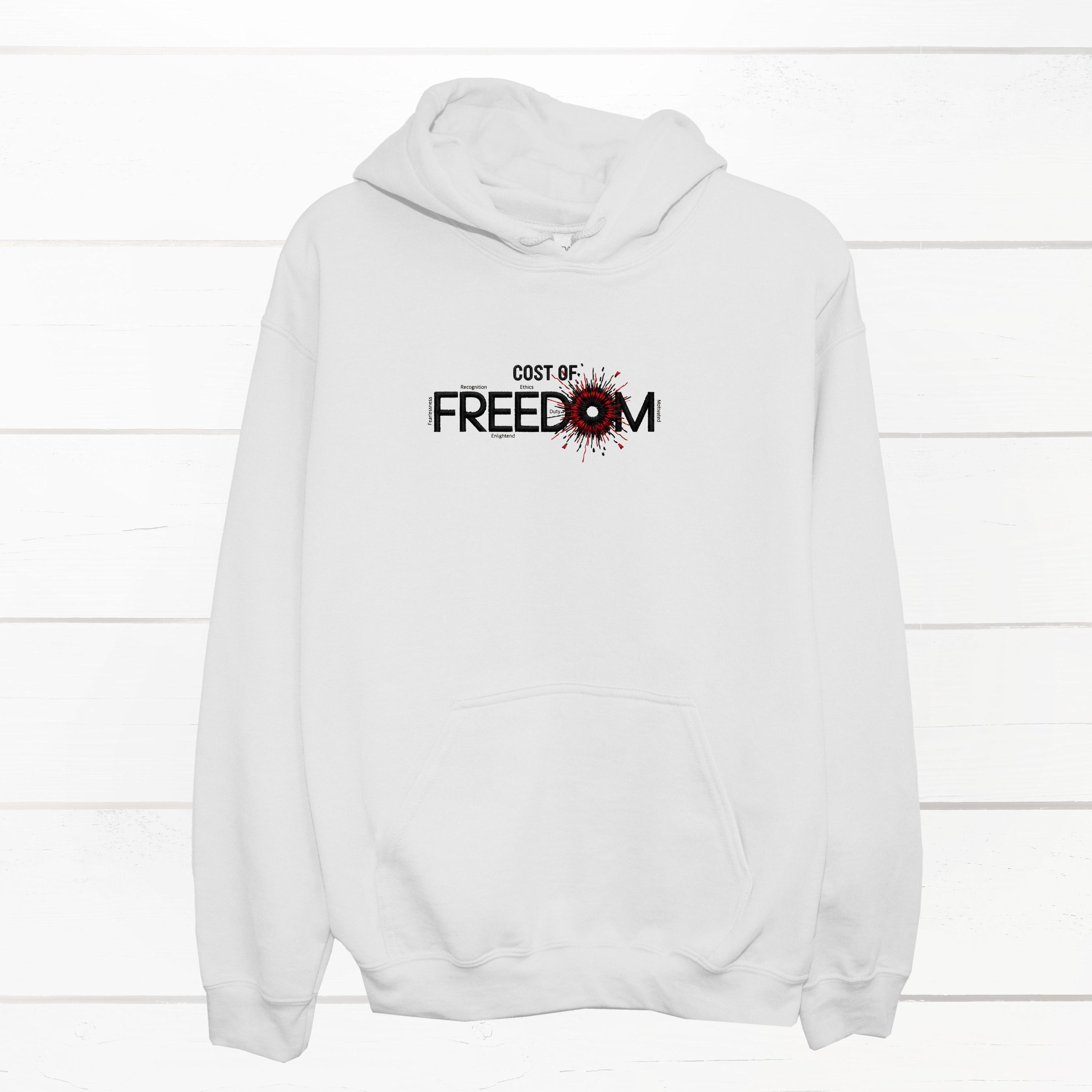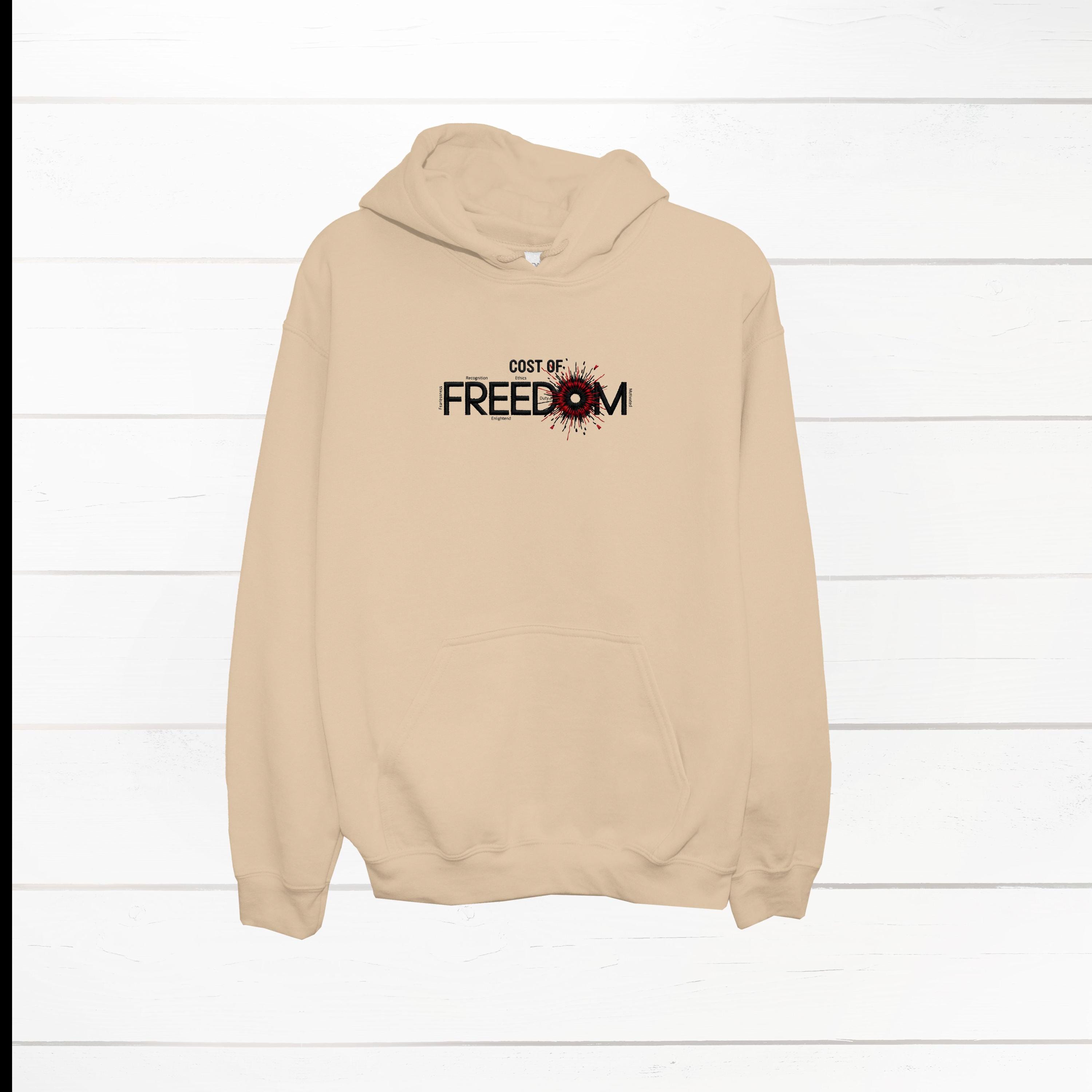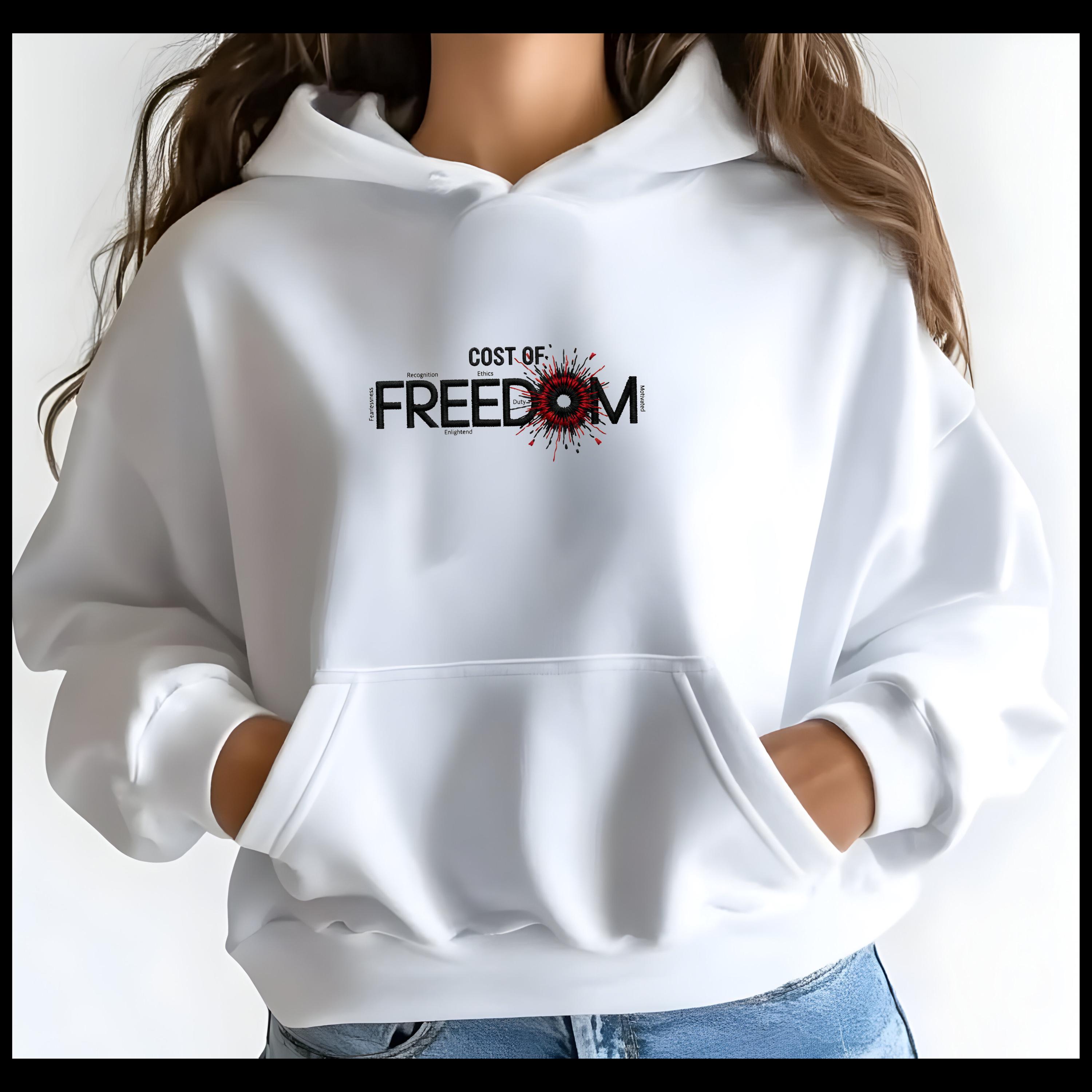 A tribute to the price paid for liberty. This hoodie features the powerful "Cost of Freedom" slogan paired with a striking bullet hole visual—symbolizing the sacrifices made to try and keep our freedom. It’s designed for those who understand the weight of the message. Wear it with pride and respect.