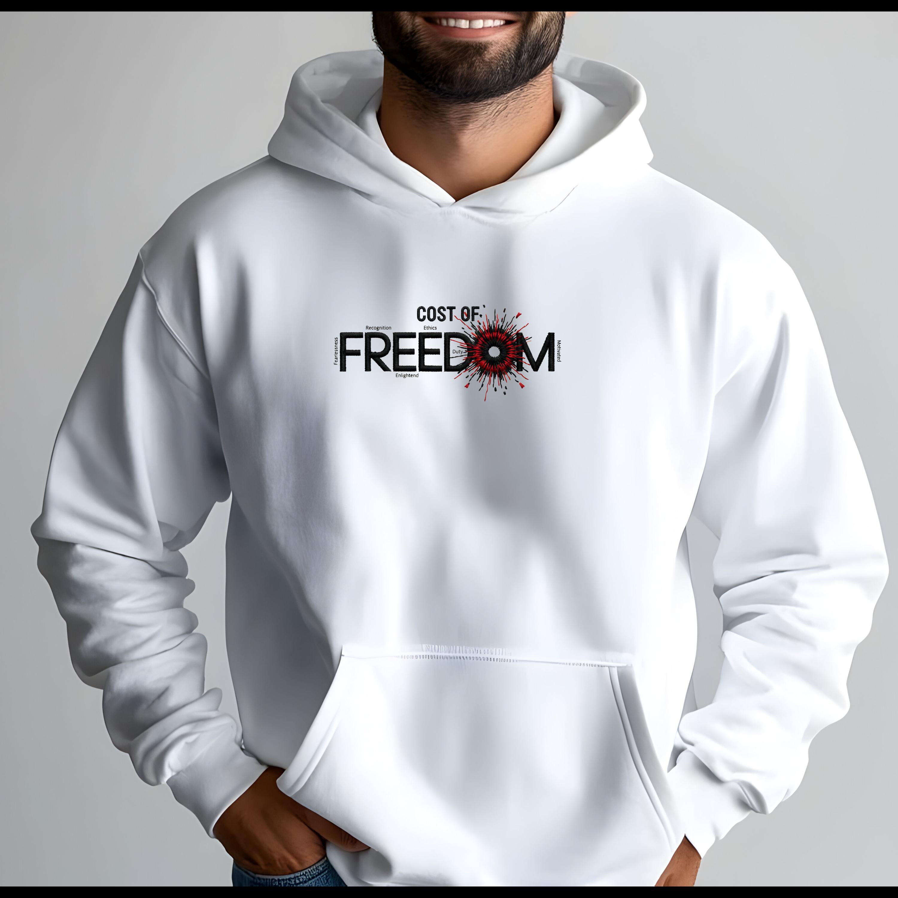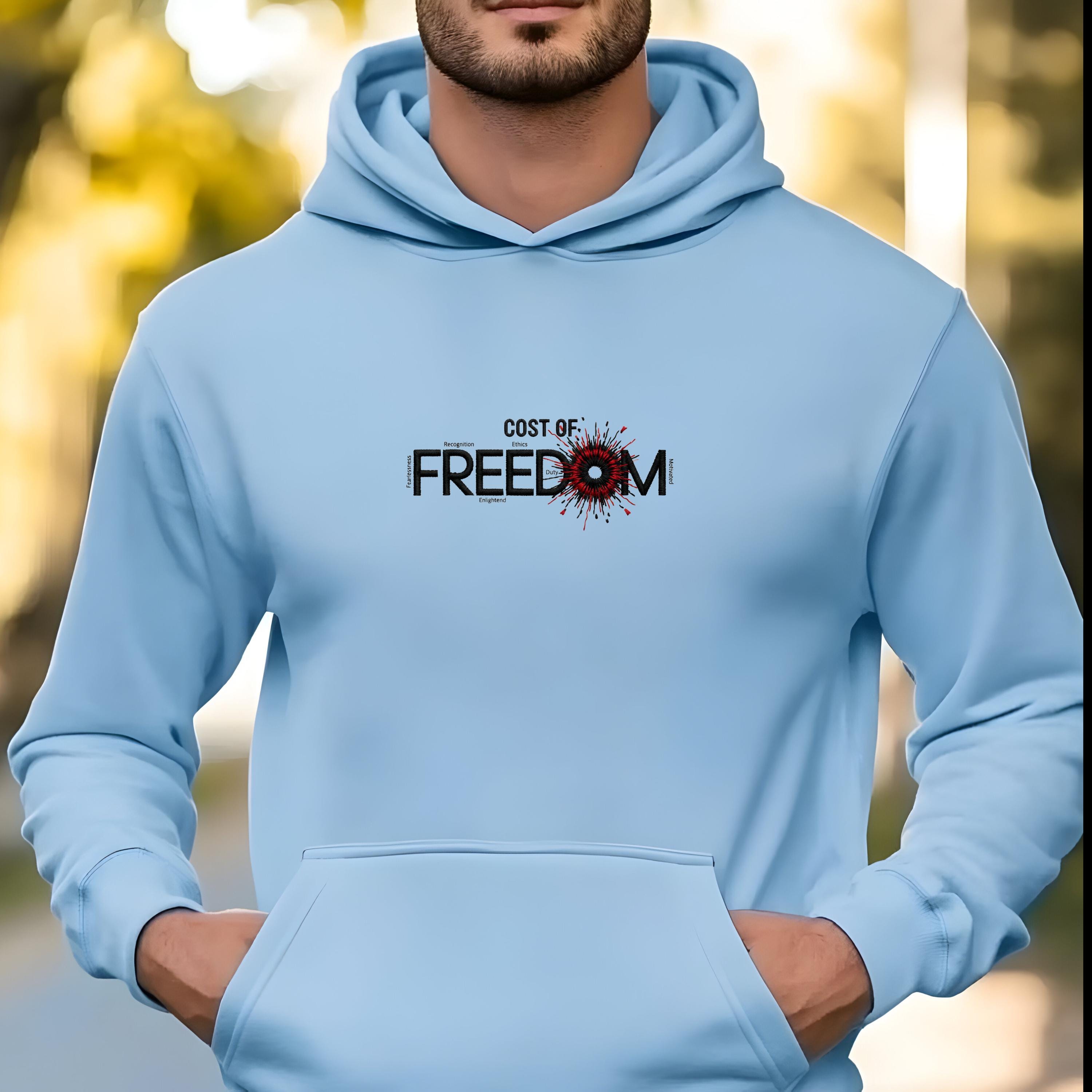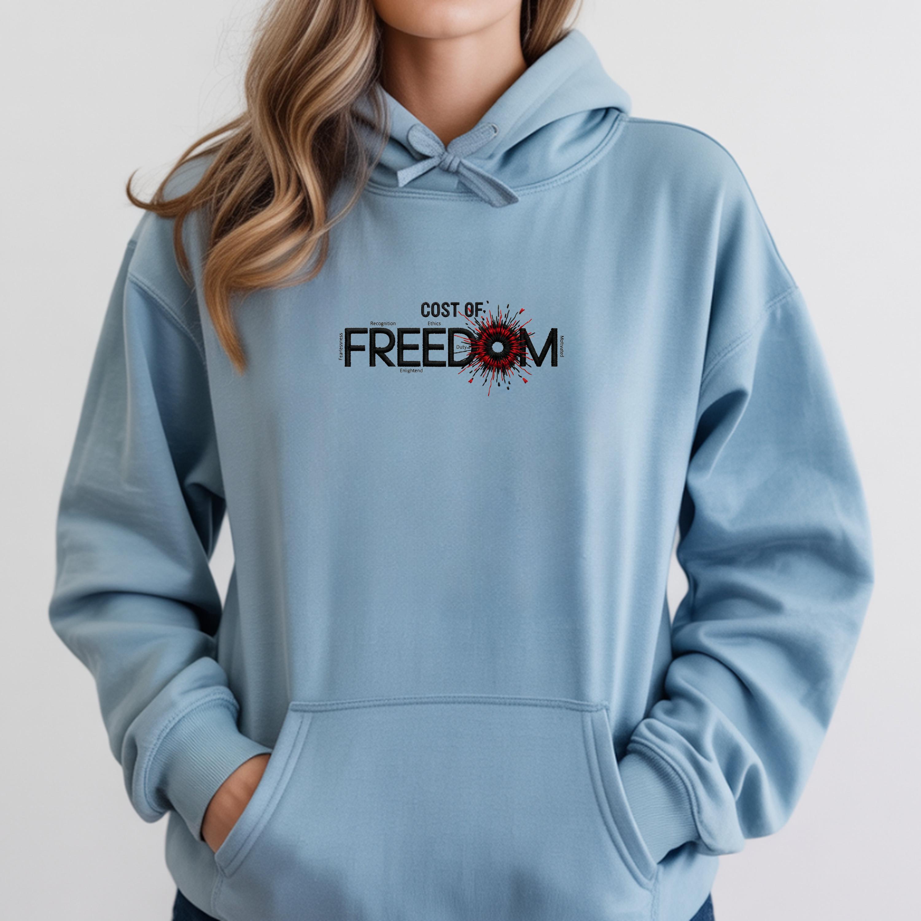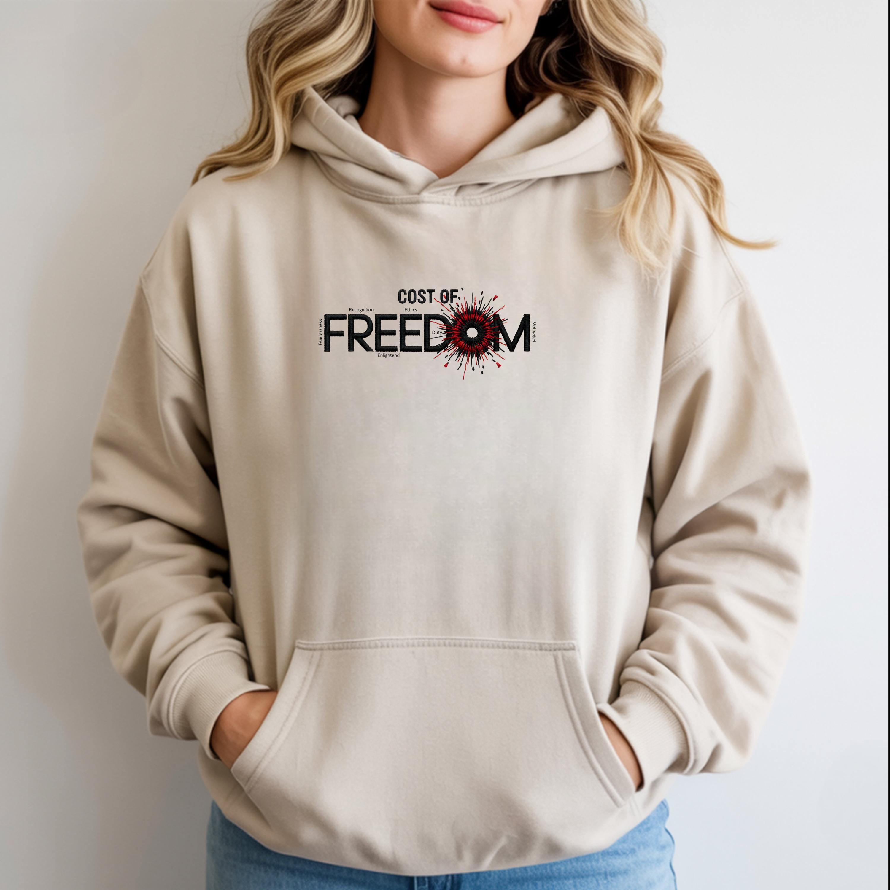 A tribute to the price paid for liberty. This hoodie features the powerful "Cost of Freedom" slogan paired with a striking bullet hole visual—symbolizing the sacrifices made to try and keep our freedom. It’s designed for those who understand the weight of the message. Wear it with pride and respect.