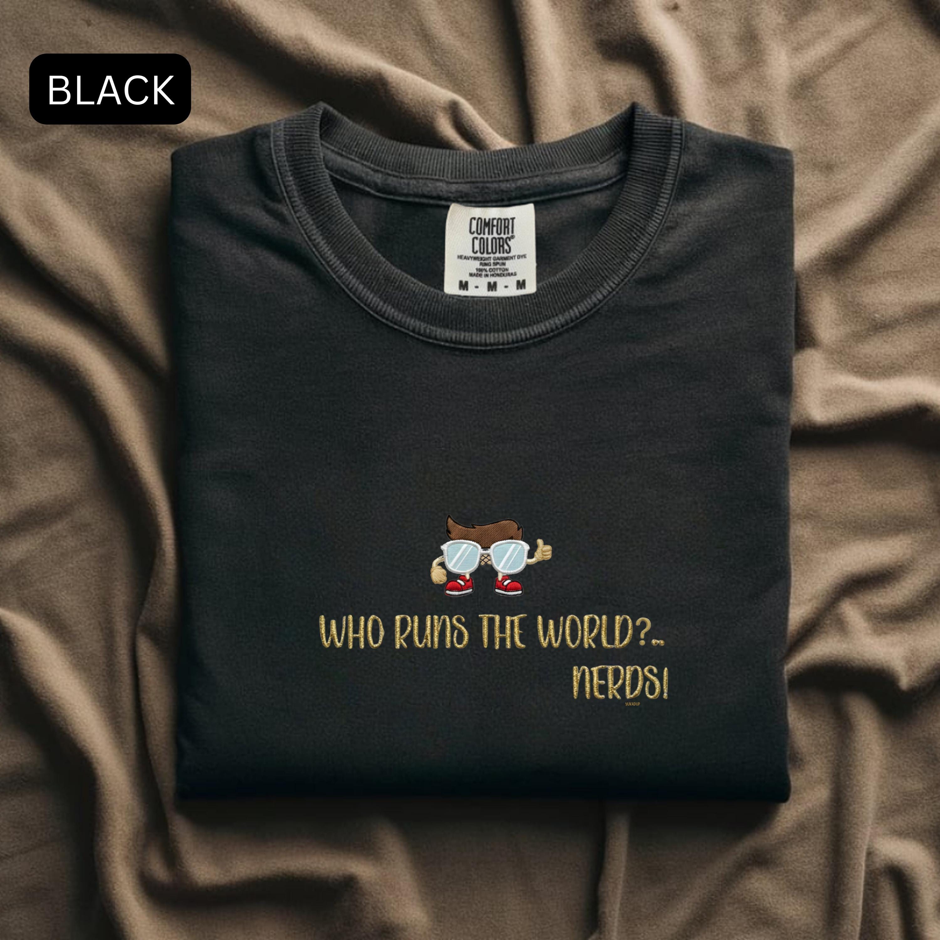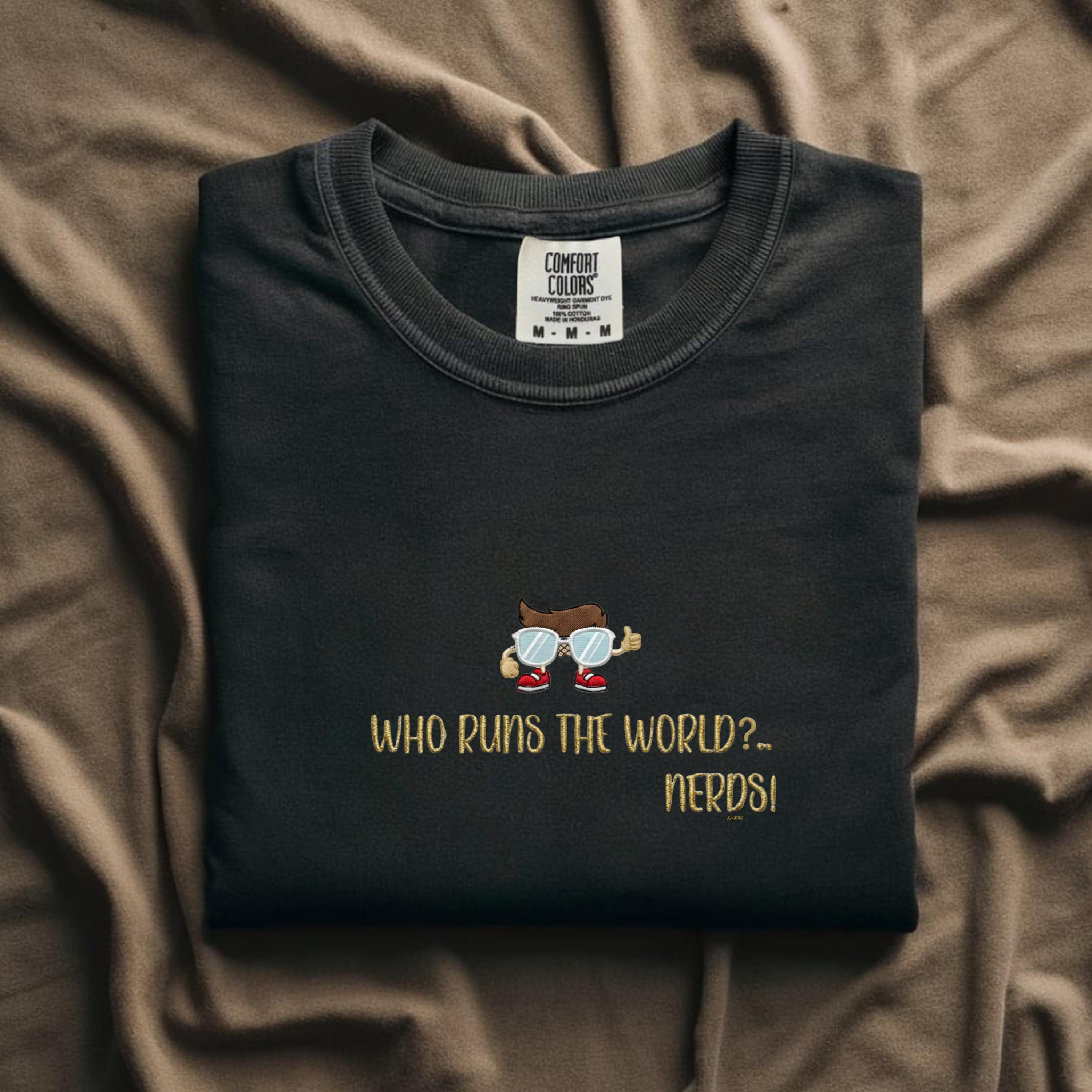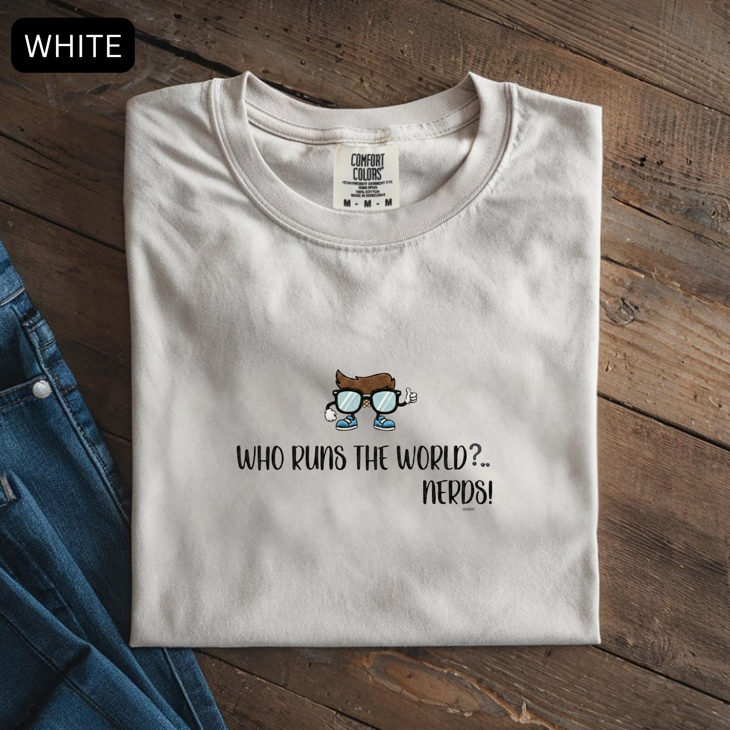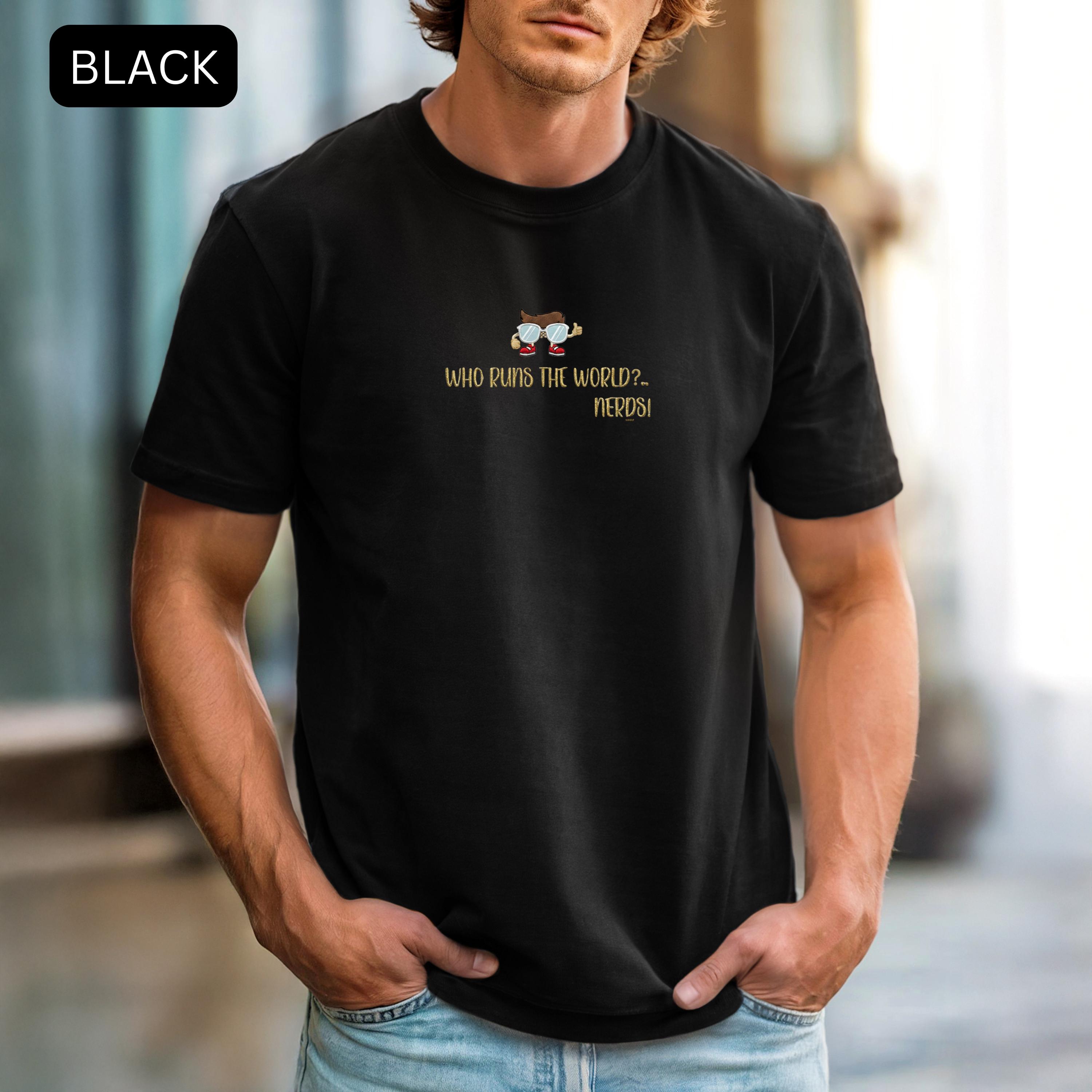 www.etsy.com/shop/YukaDupCelebrate the brains behind the operation with this "Who Runs The World? Nerds" tee! Featuring a lovable cartoon nerd giving a confident thumbs-up, this design is a hilarious nod to the geeks, gamers, and geniuses who make the world go 'round.