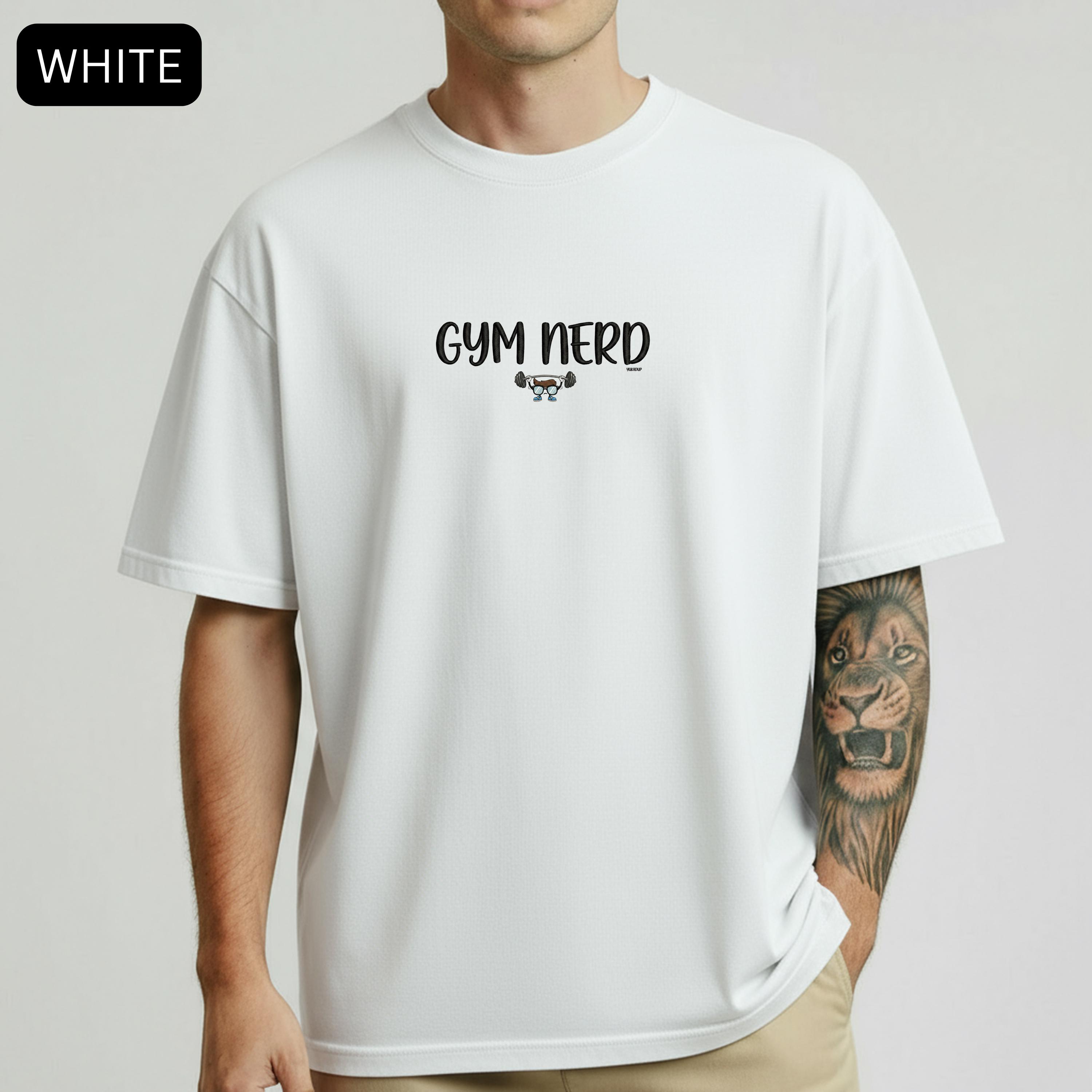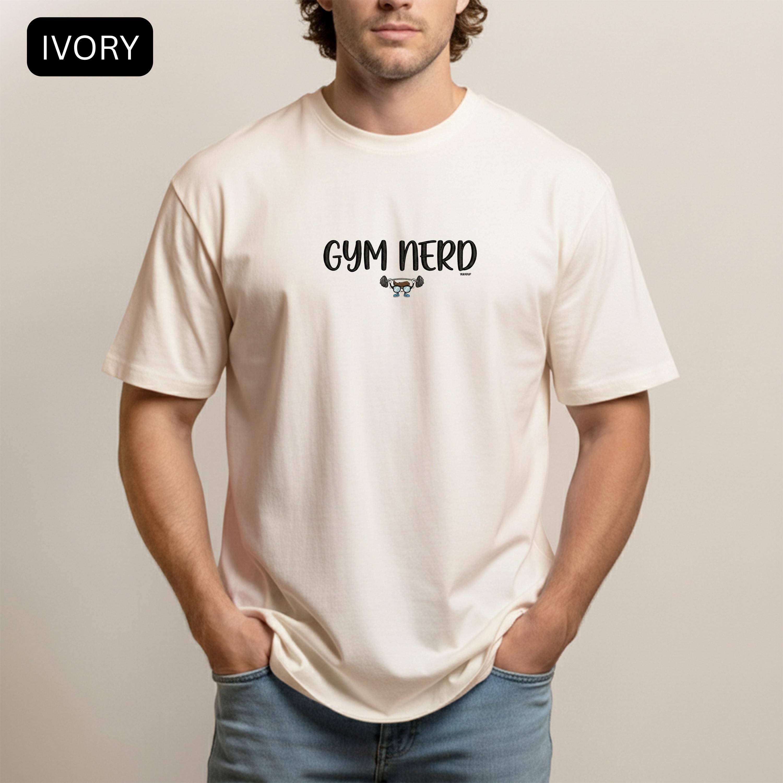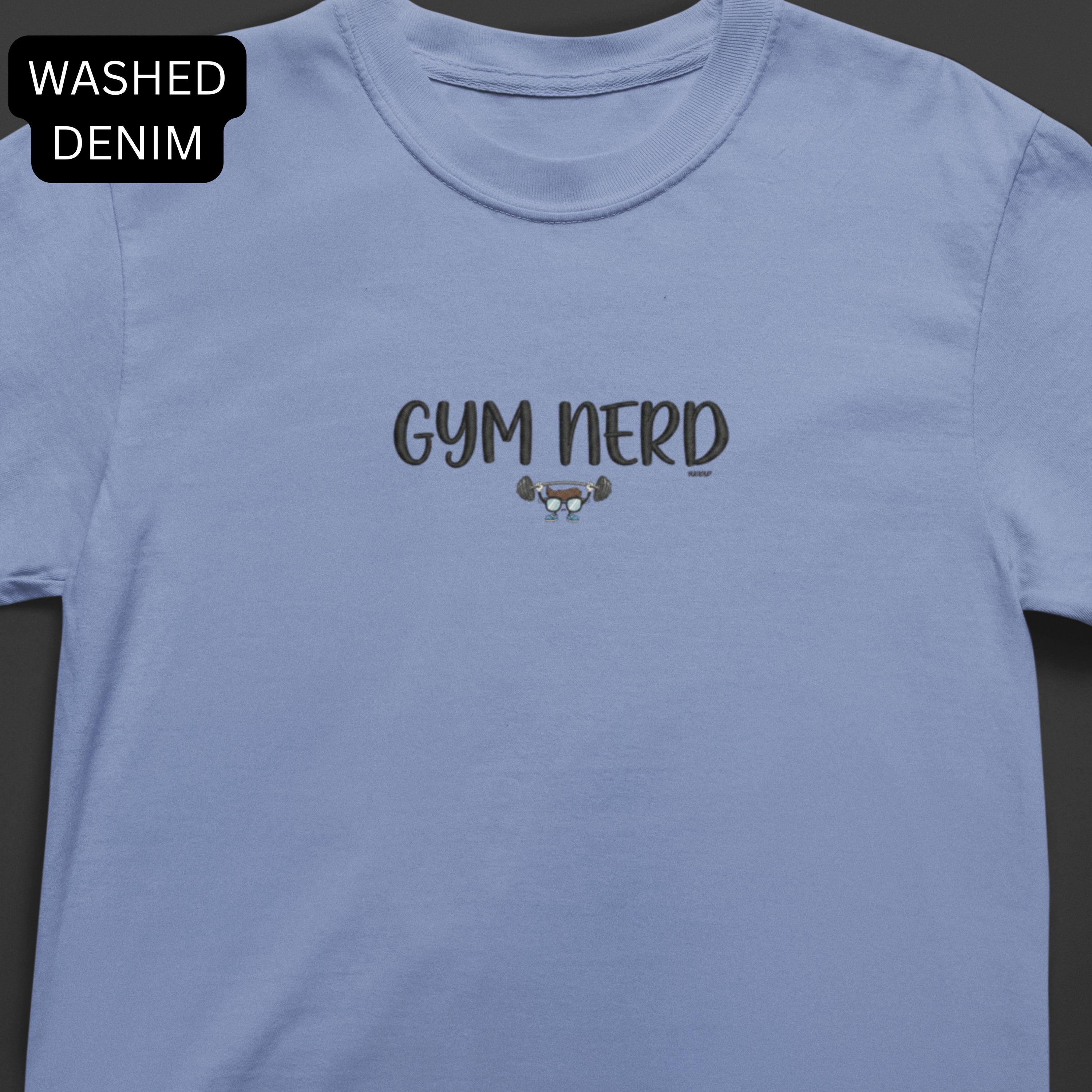 Celebrate the grind with our humorous "Gym Nerd" t-shirt. The minimalist chest graphic features a cool little lifting legend wearing shades and hoisting a heavy red barbell. It's subtle, funny, and looks great in and out of the gym.