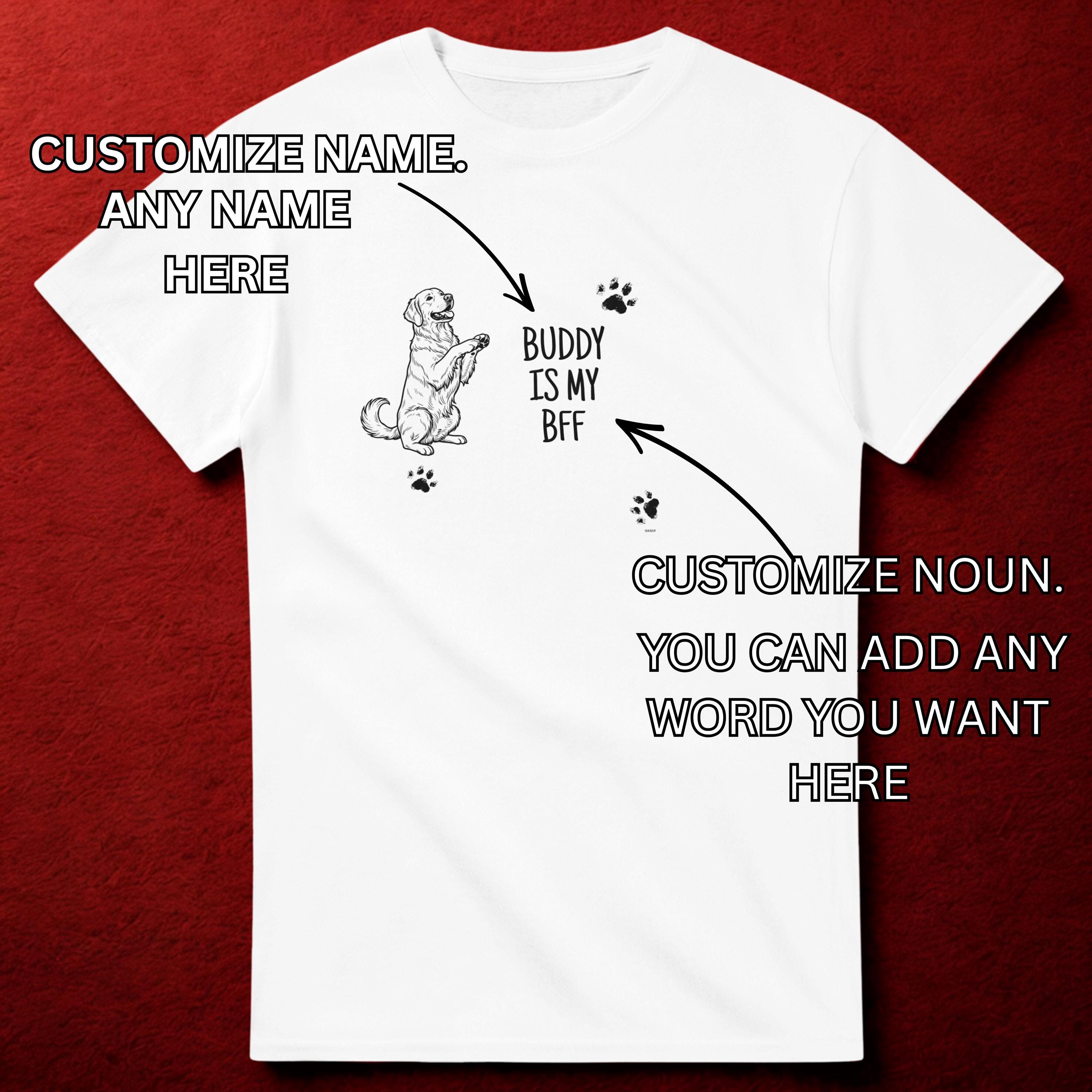 www.etsy.com/shop/YukaDupThis shirt features a minimalist line-drawing of a Golden Retriever and allows you to customize TWO parts of the text: