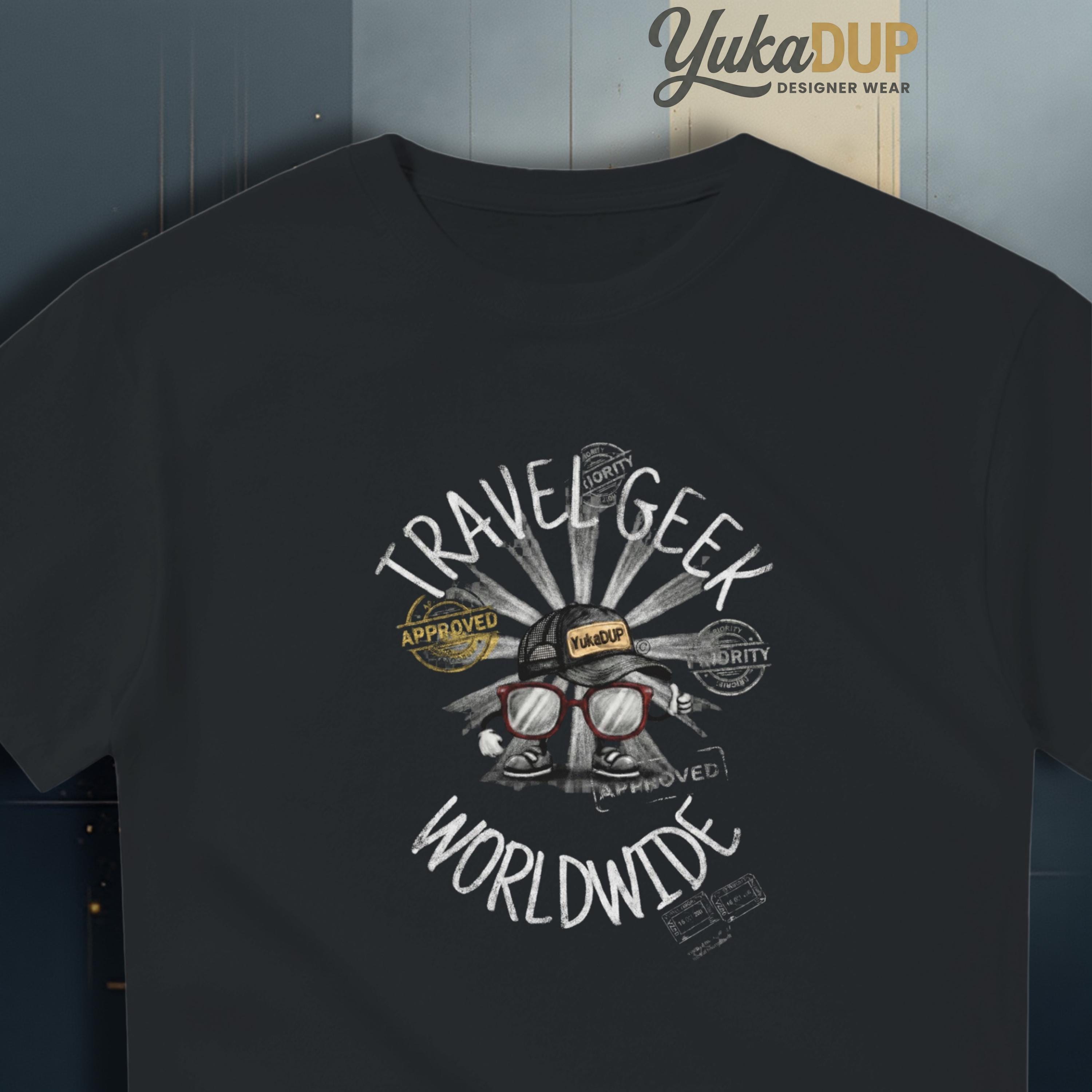 Introducing the World Wide Travel Geek Tee, the perfect blend of style and adventure! This trendy graphic t-shirt has a charcoal styled graphic and celebrates your love for travel with a stunning design featuring our own geek character graphic. Made from heavyweight cotton in a relaxed fit, this unisex casual tee from our Nerd/Geek line is a fashionable statement piece for any adventurer at heart.